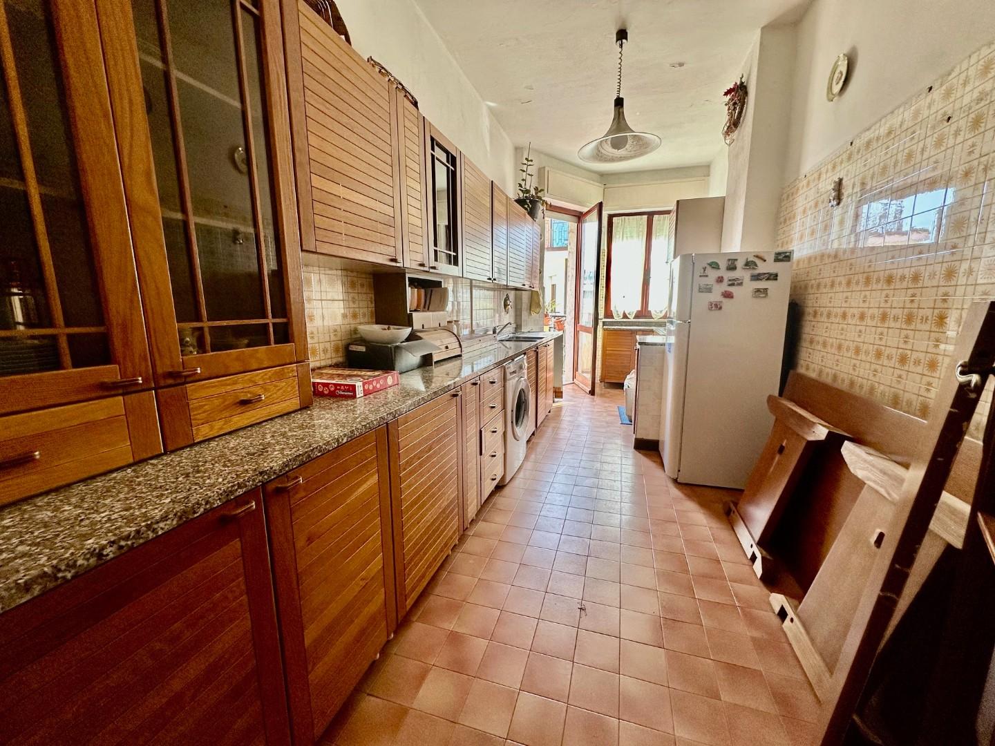Internamente sono circa 95 mq circa così distribuiti: ingresso attrezzabile con un bell'armadio contenitore, soggirono con prima terrazza, cucina abitabile con altra terrazza, disimpegno, camera matrimoniale, camera doppia e bagno.