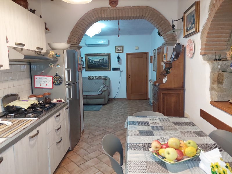 Policiano vendesi appartamento terratetto con ingresso indipendente completamente ristrutturato libero su 3 lati, composto da : soggiorno, cucina abitabile, bagno con finestra, camera con cabina armadio, al piano superiore grande salotto con affaccio su terrazza panoramica di 25 metri con tenda telescopica telecomandata ; l'appartamento è dotato di pannelli solari, cappotto, infissi nuovi, aria condizionata, impianto di riscaldamento autonomo, completa la proprietà una cantina di 10mt. e un annesso di 20 metri.