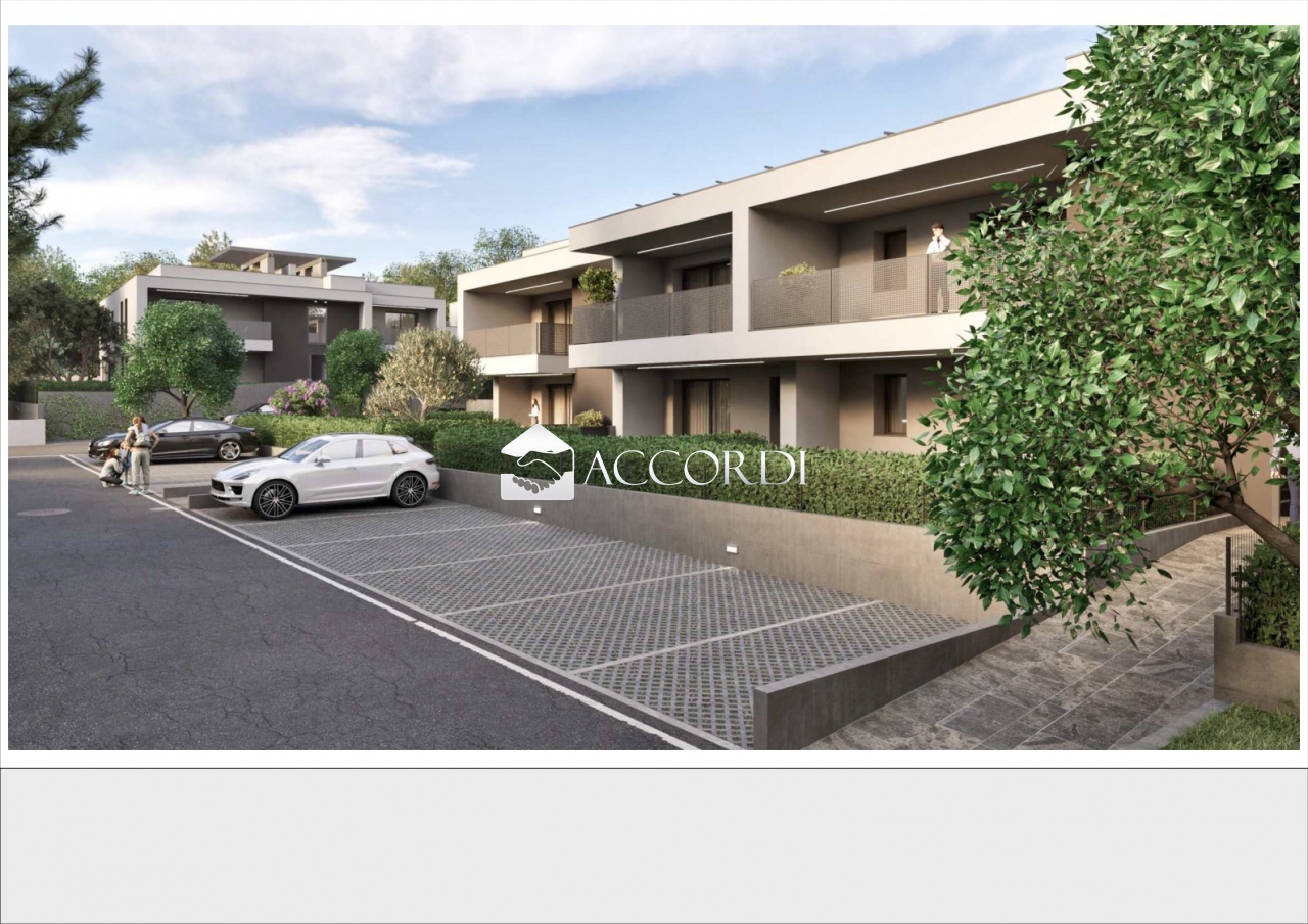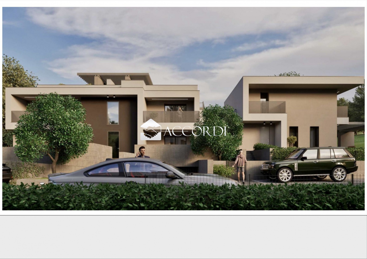 Ogni unità avrà garage doppio al piano interrato e posto auto esterno scoperti in proprietà. PRESENTE ASCENSORE Le finiture degli appartamenti saranno in stile moderno con possibilità di personalizzazione, particolare attenzione verrà prestata al risparmio energetico con l'installazione di impianto di riscaldamento a pavimento in pompa di calore ed impianti fotovoltaici dedicati, come anche alla sicurezza ed alla privacy del complesso in quanto sarà un borgo con cancello a delimitazione dell'intero complesso.