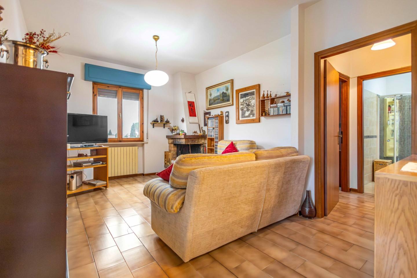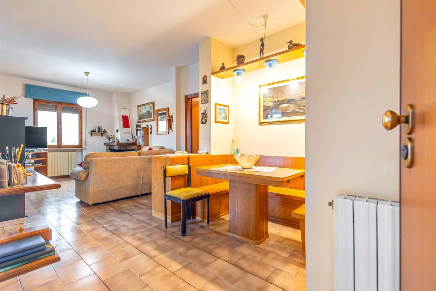 Si accede direttamente nella zona giorno dove troviamo un ampio soggiorno con caminetto, zona pranzo con accesso ad una terrazza abitabile dove possibile pranzare nel periodo estivo e cucinotto separato.