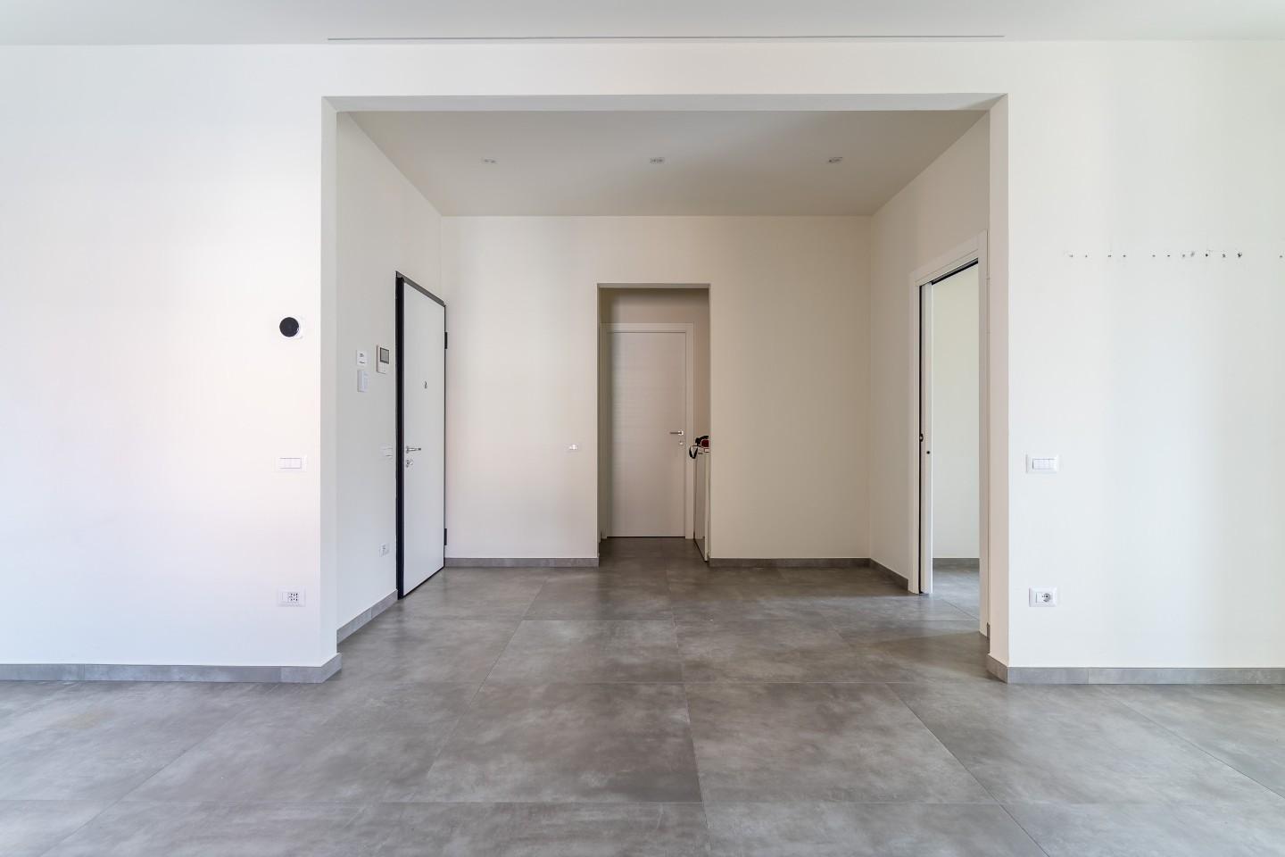 Riscaldamento radiante a pavimento con termostati in ogni stanza.