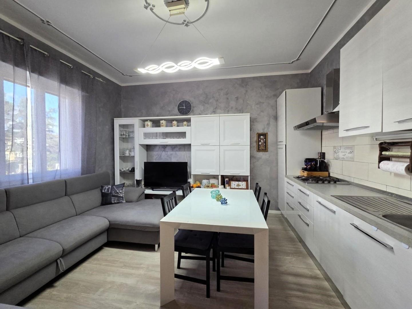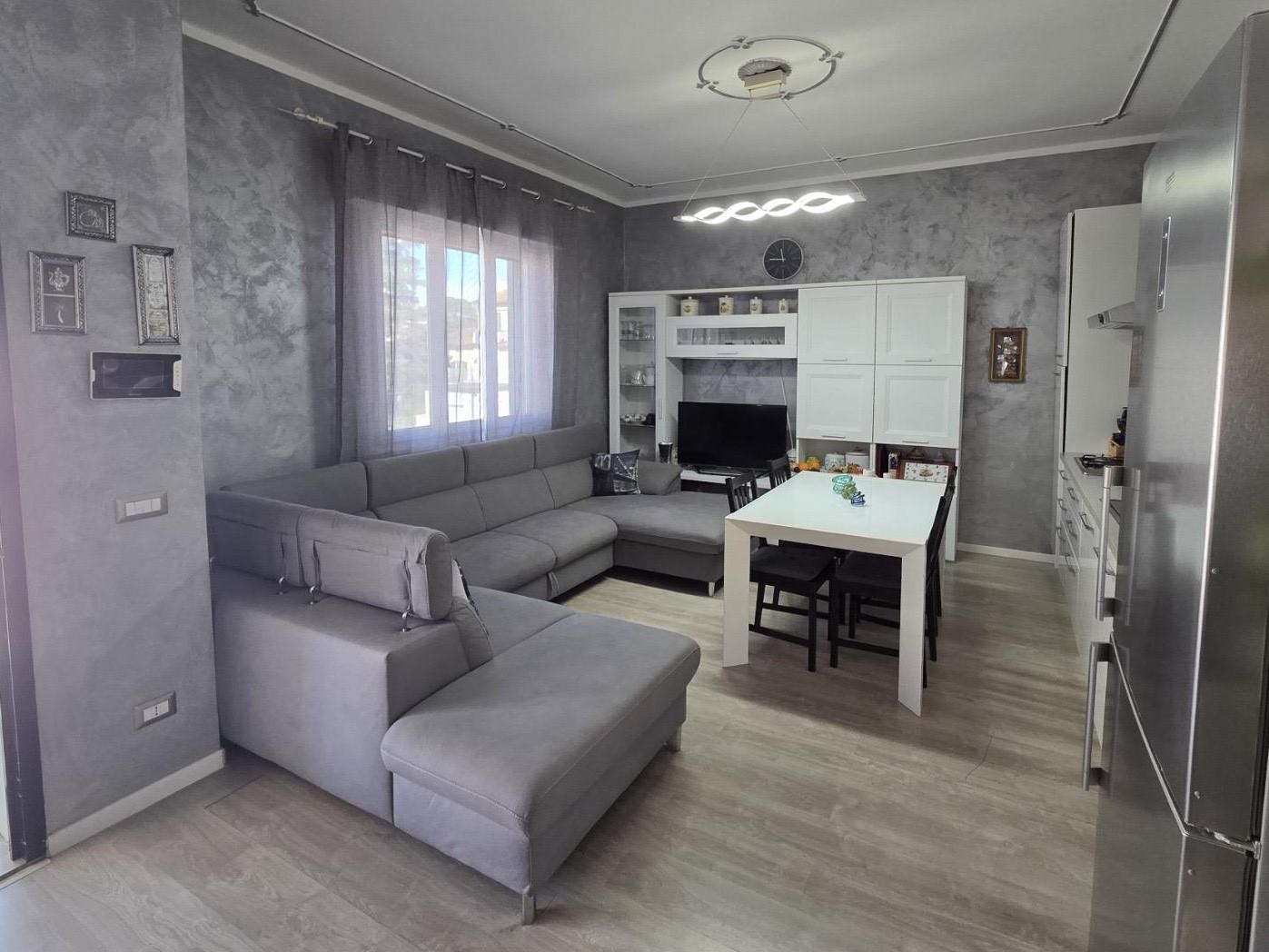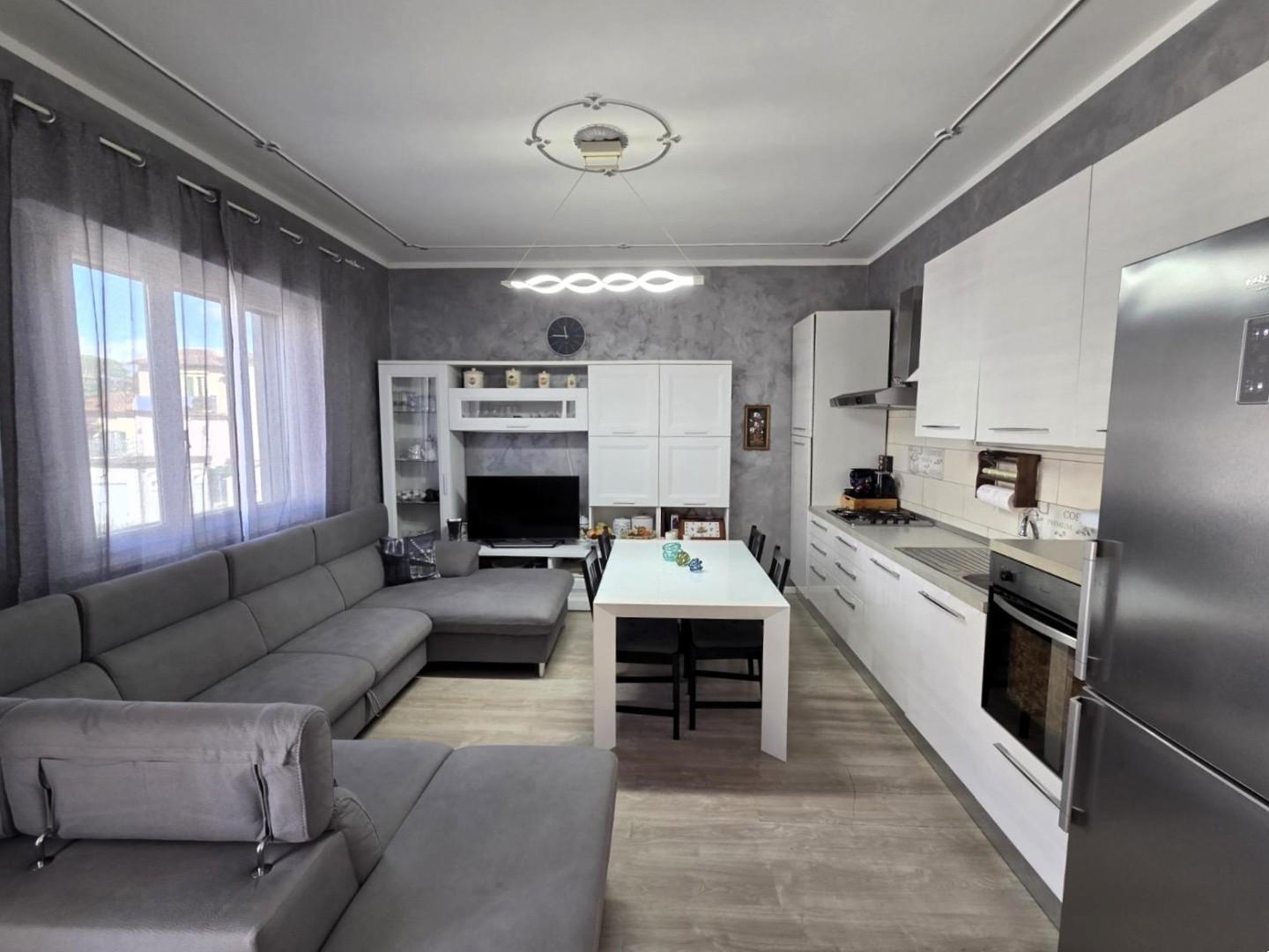 Entrando, ci troviamo di fronte ad un appartamento completamente e finemente ristrutturato, ed è così composto: soggiorno/cucina, ripostiglio, piccolo disimpegno da cui si accede alle tre camere di cui due matrimoniali e una doppia, oltre al bagno.