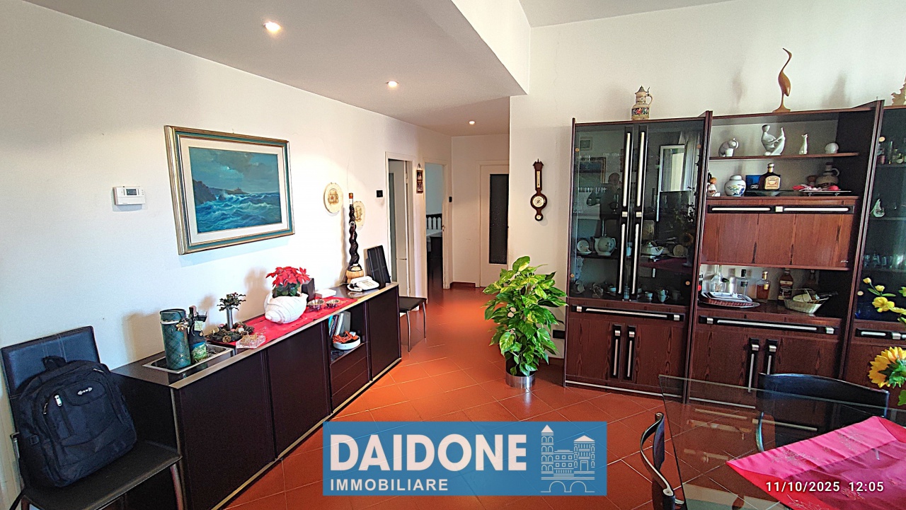 È composto da quattro grandi vani, suddivisi in ingresso, sala doppia, cucina abitabile con veranda (condonata), camera da letto matrimoniale, camera da letto singola, bella terrazza, ripostiglio, bagno e ascensore.