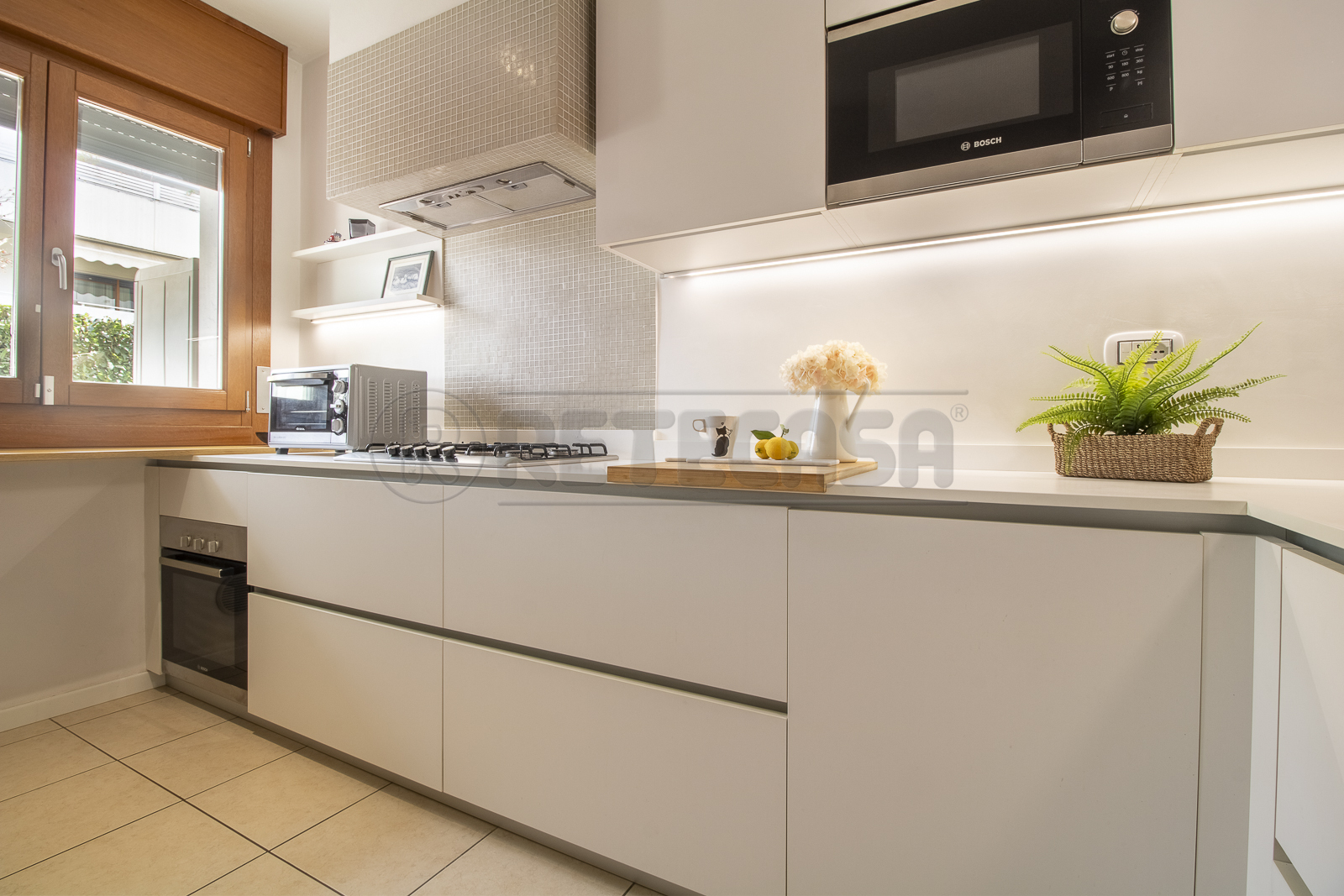 Limmobile si compone di ingresso su zona giorno open space con angolo cottura dalla quale si accede direttamente ad una VERANDA COPERTA, ideale per pranzi e momenti di relax allaria aperta senza rinunciare alla comodità di vivere in centro città. La zona notte è composta da una spaziosa camera matrimoniale, una camera doppia e due bagni, di cui uno finestrato.