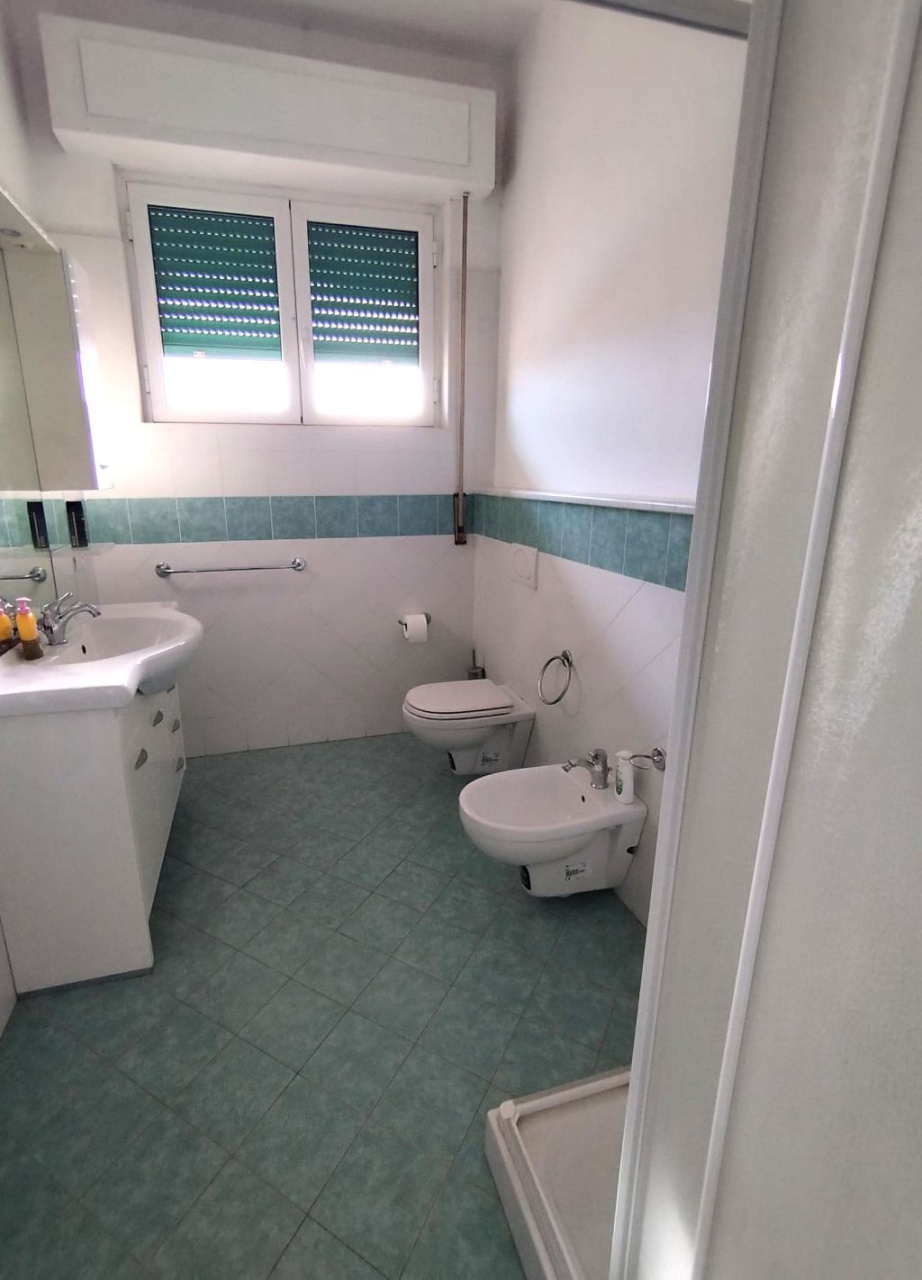 l'ampia terrazza, accessibile sia dal salotto che dalla cucina, ha una bella vista con un discreto scorcio di mare e un balcone verandato e termoautonomo ed ha un ripostiglio nella corte condominiale.