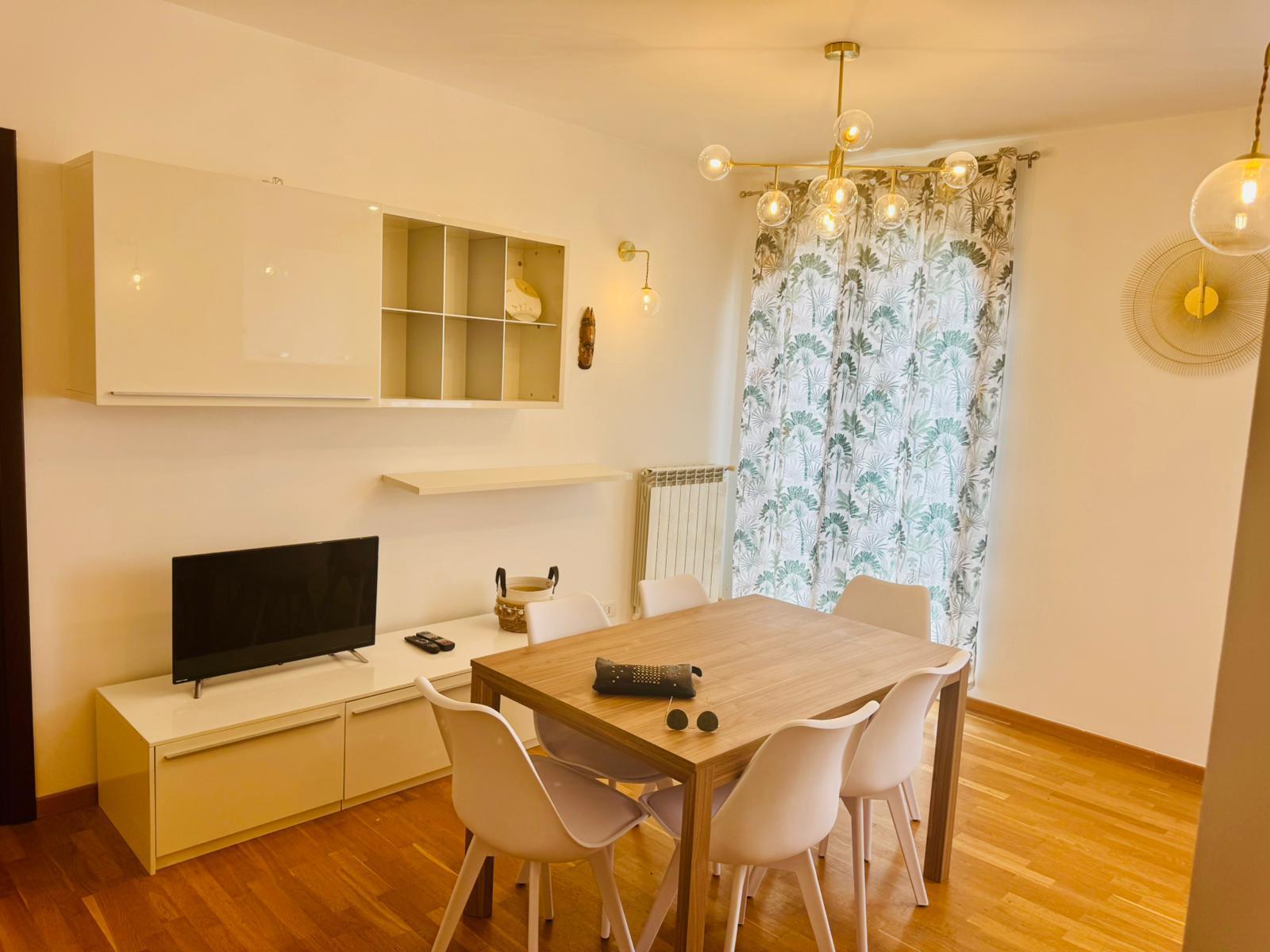 Appartamento al secondo ed ultimo piano con ascensore, in palazzo moderno, completamente ristrutturato ed arredato nuovo, composto da: ingresso in disimpegno, soggiorno con angolo cottura/pranzo, corridoio, due camere doppie, due bagni, terrazzo.