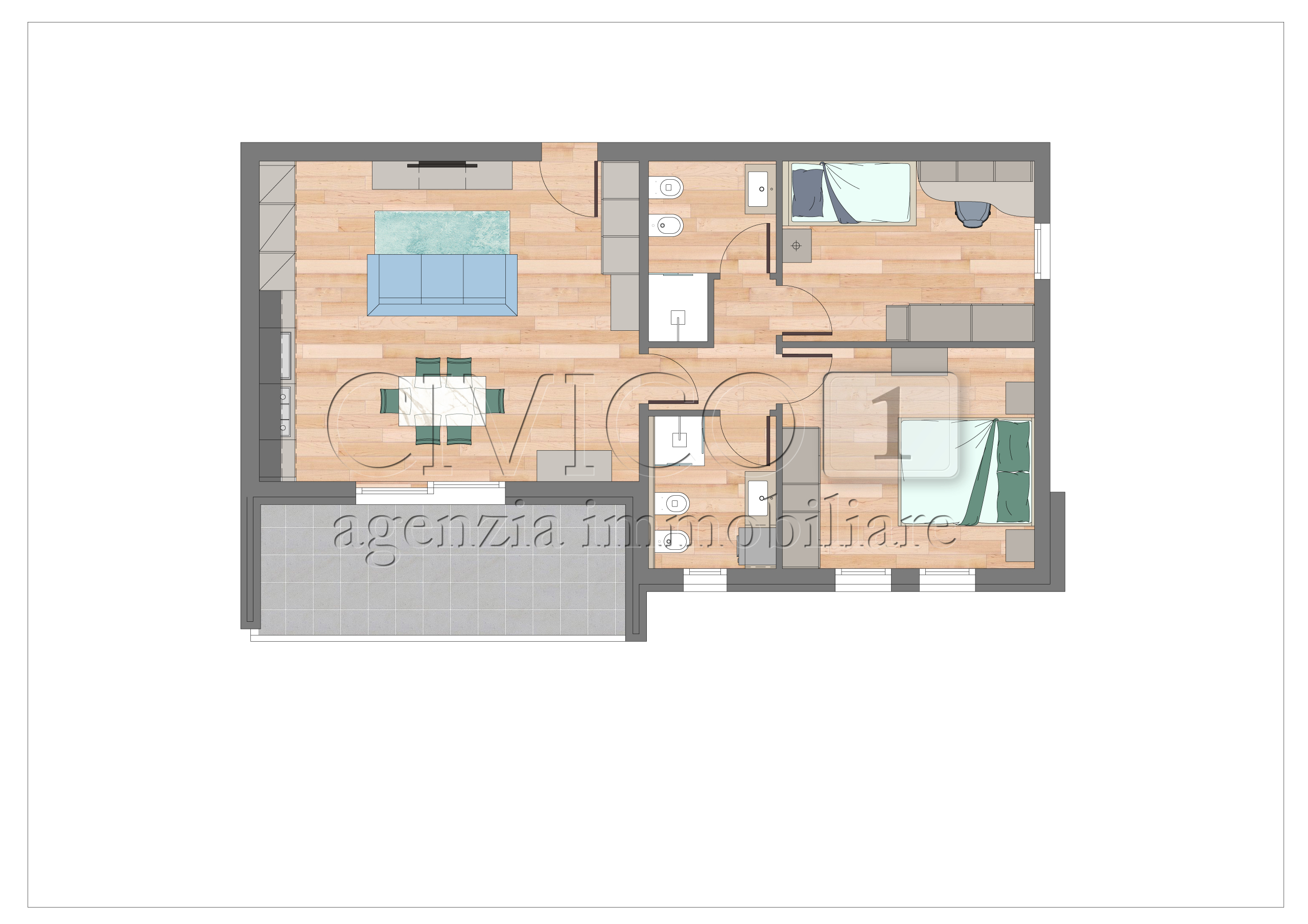 TRA240 RESCHIGLIANO In un contesto residenziale curato e comodo alle tangenziali, proponiamo in Vendita esclusivo appartamento BICAMERE ULTIMO PIANO con TERRAZZO LIVING in costruzione in Classe Energetica "A4". Caratteristiche dell'immobile: Zona Giorno Open space con angolo cottura e accesso diretto al terrazzo living tramite ampio alzante scorrevole, disimpegno, due camere, due bagni.