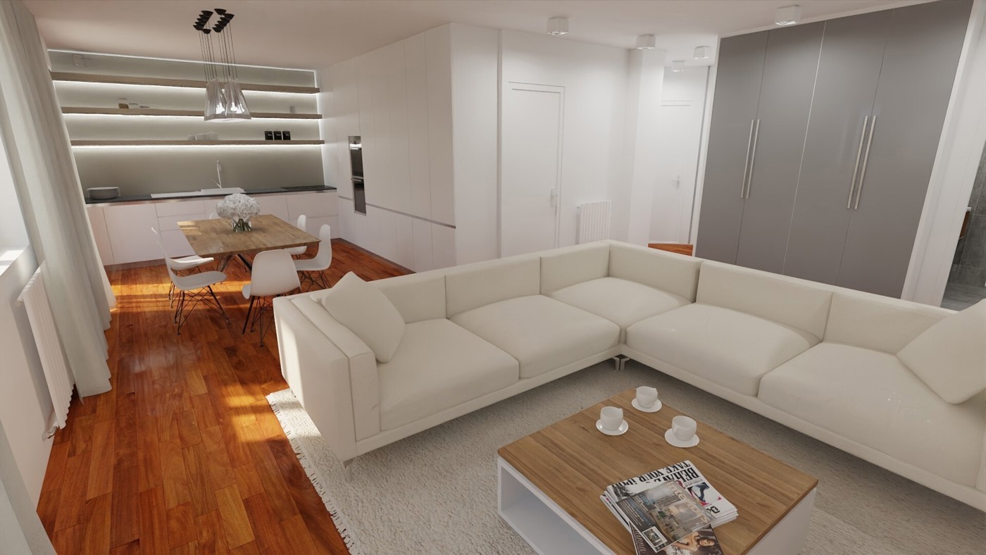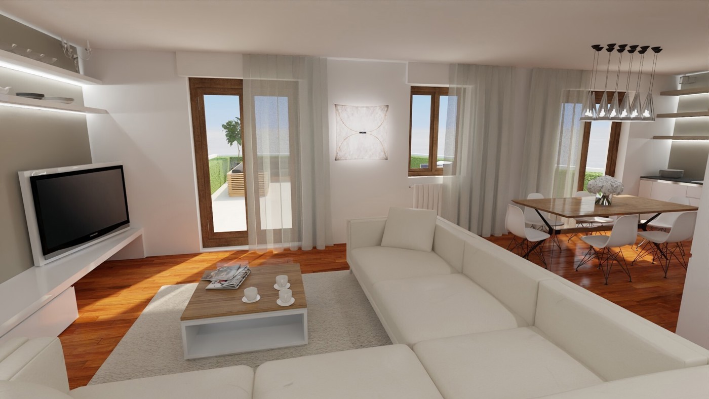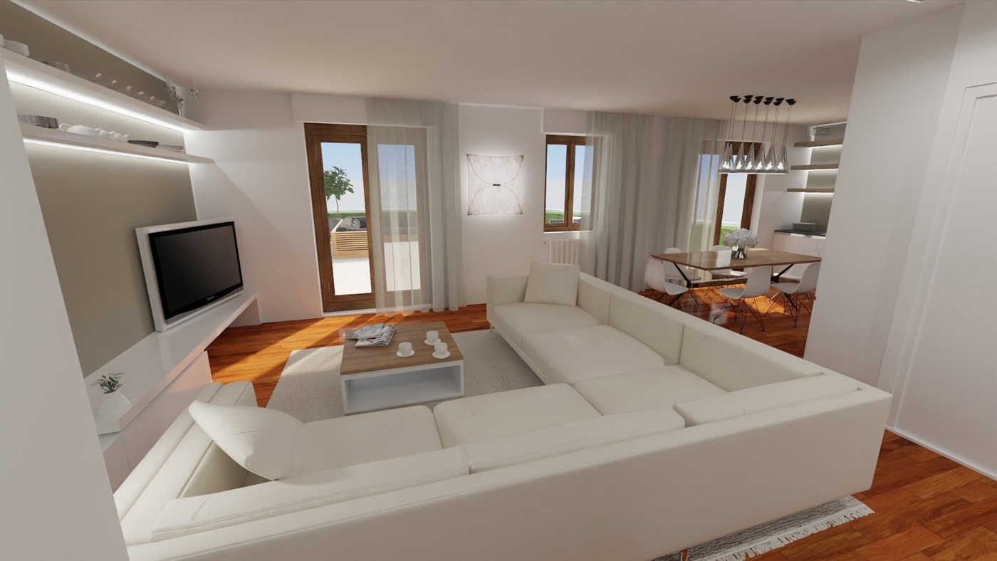 L'immobile si compone di ampio soggiorno luminoso con cucina a vista.