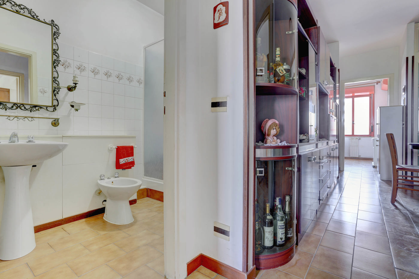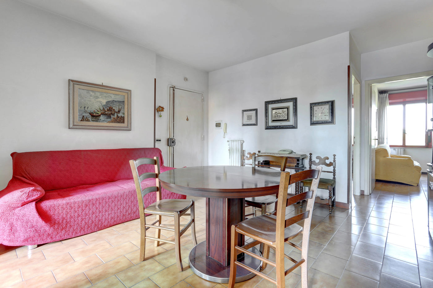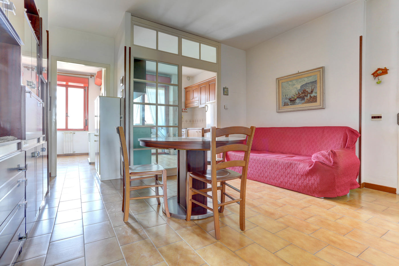 Attualmente cos suddiviso: salotto, cucina abitabile, tre camere da letto di cui una matrimoniale e due bagni.