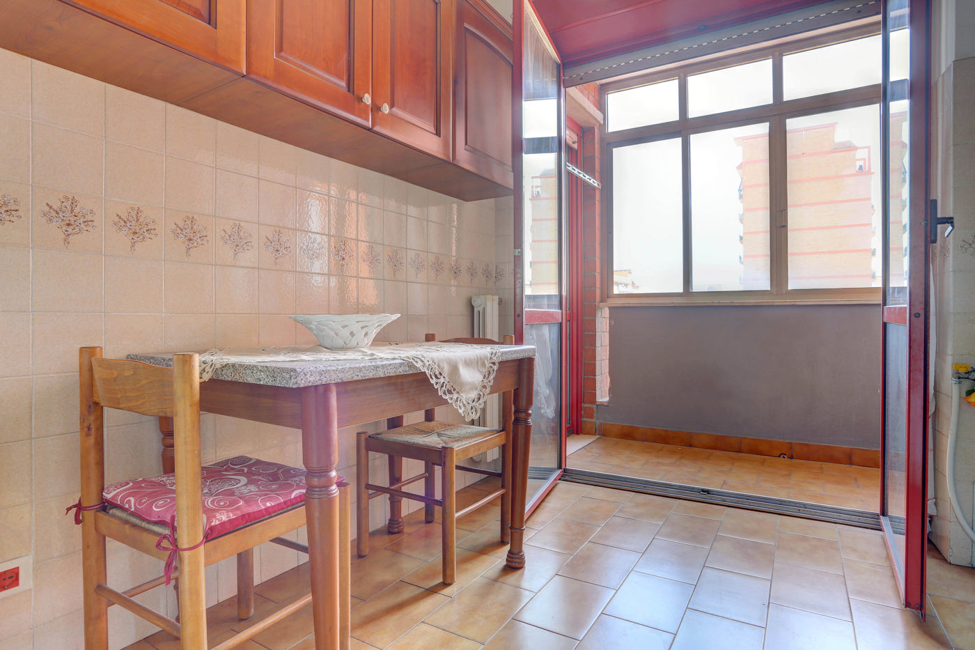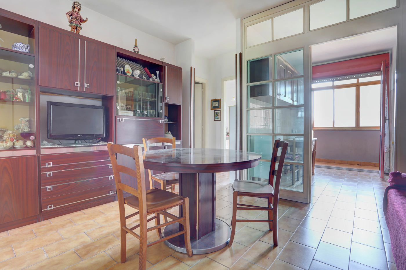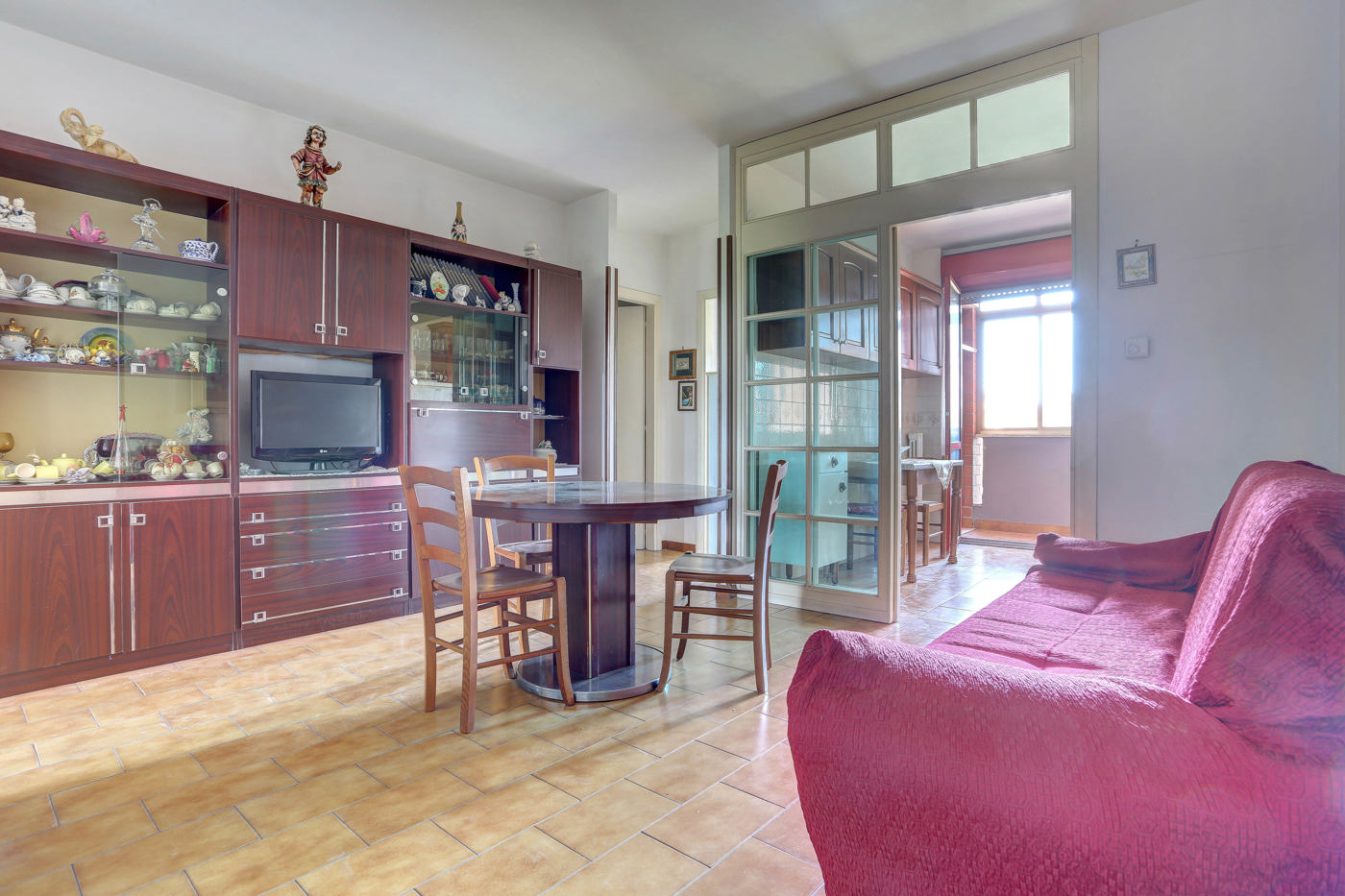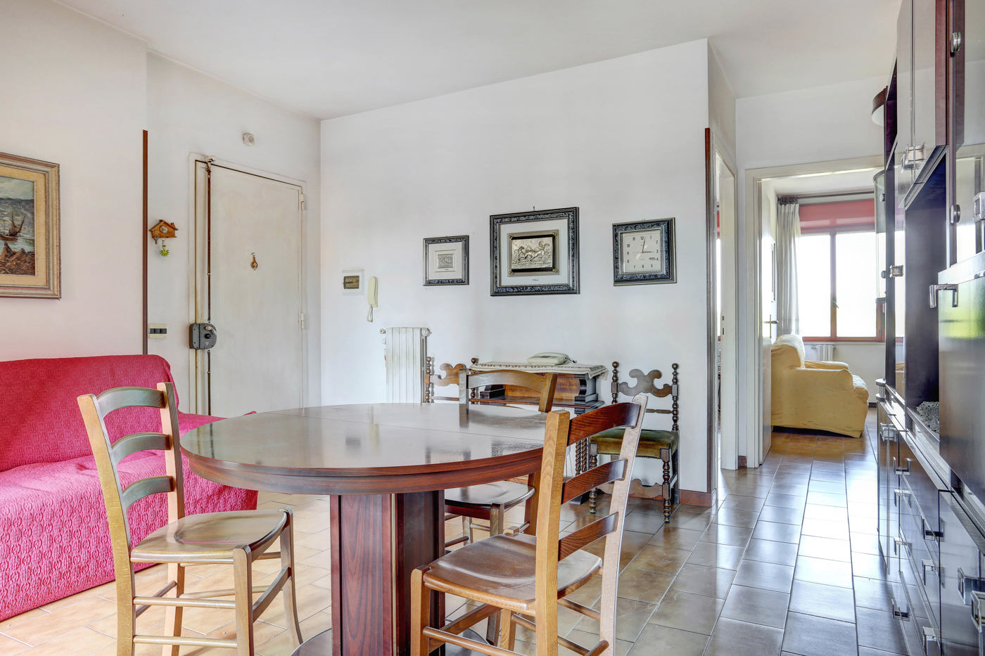 Attualmente cos suddiviso: salotto, cucina abitabile, tre camere da letto di cui una matrimoniale e due bagni.