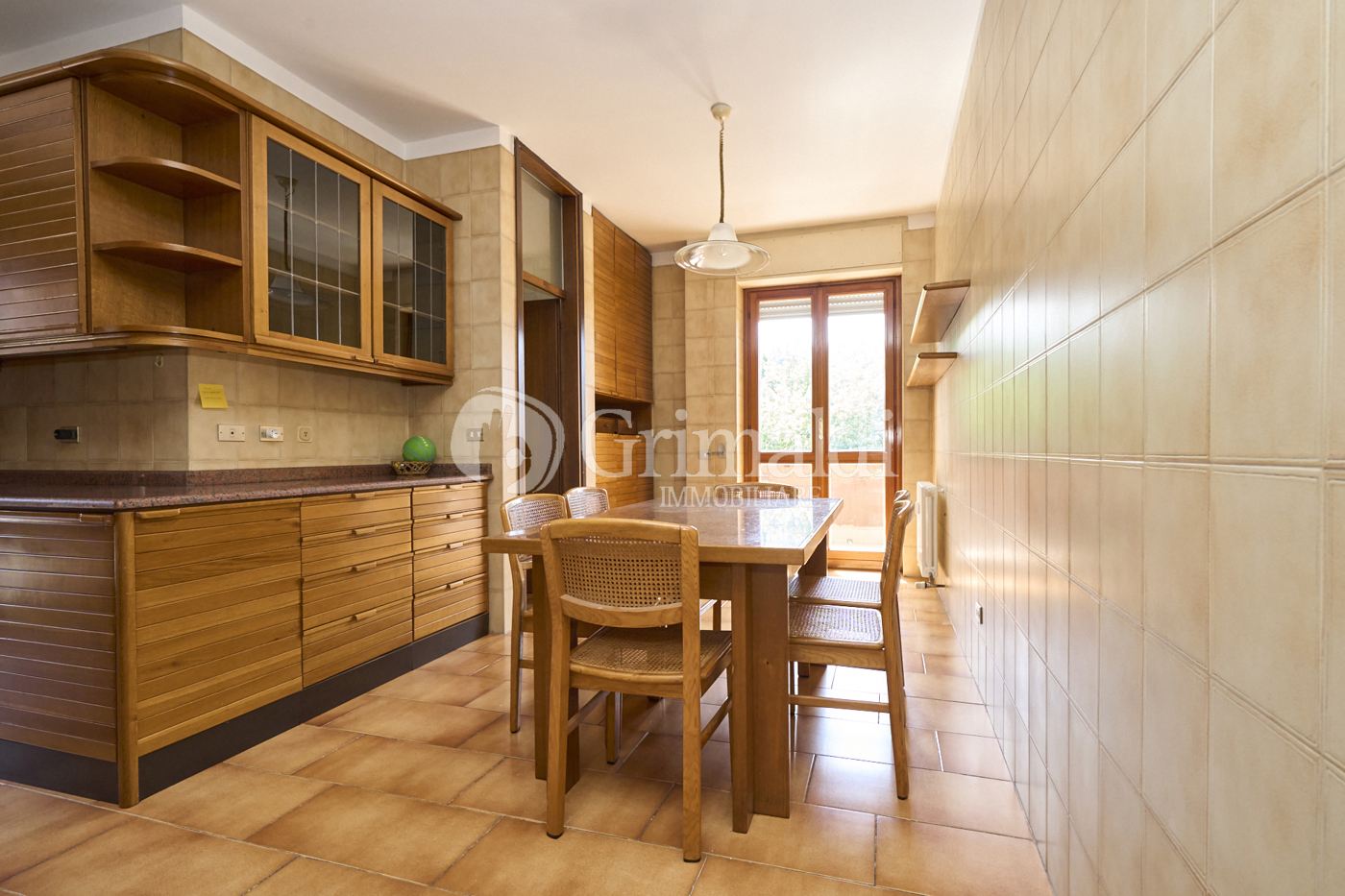 Gli infissi esterni presentano persiane in alluminio di recente installazione, infissi in legno doppio vetro in ottimo stato, marmi in soggiorno, parquet nelle camere e ceramica nei bagni e in cucina.