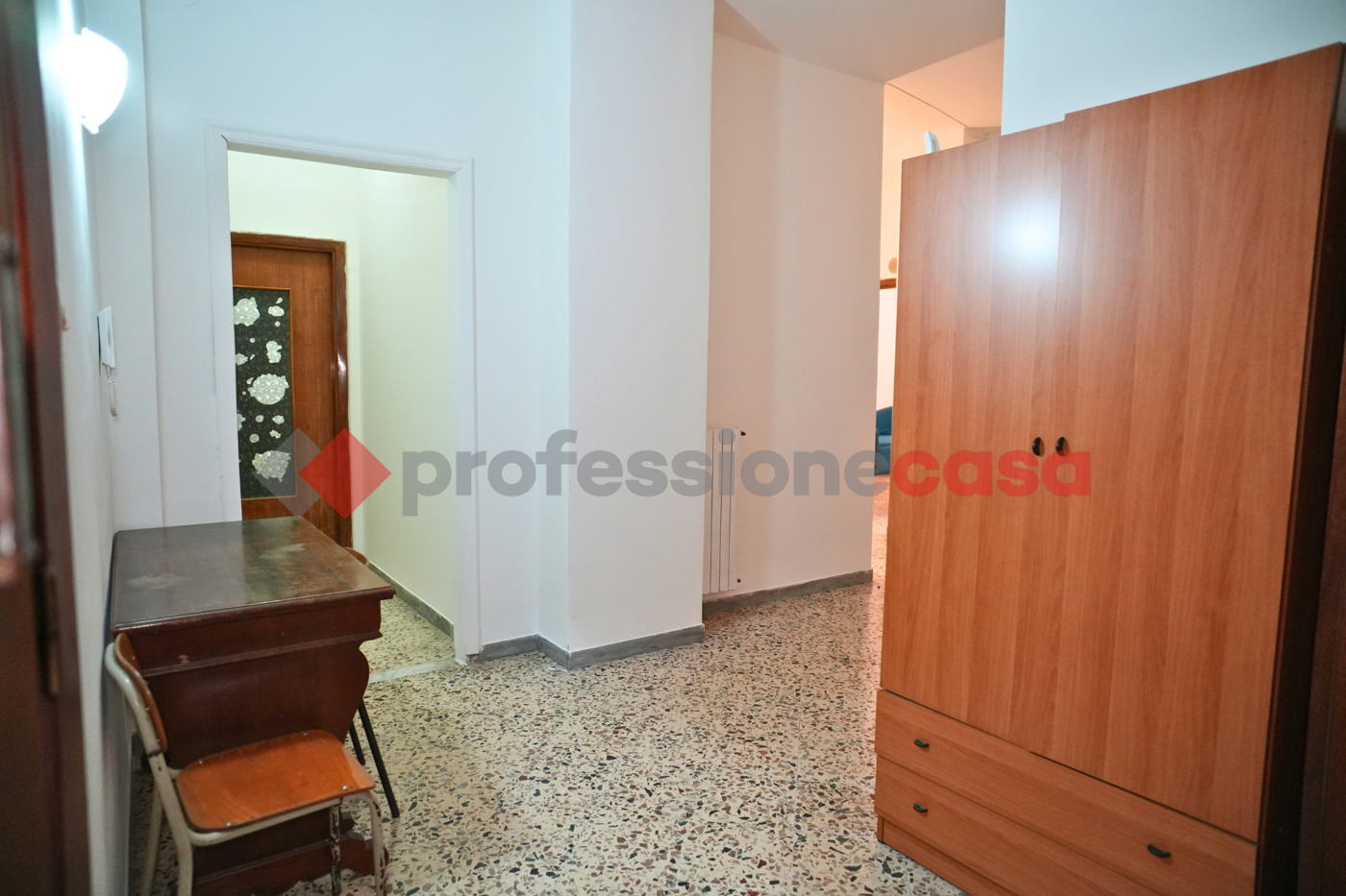 Limmobile presenta una distribuzione degli spazi comoda e funzionale: ampio ingresso, cucina, salone, tre camere da letto, un bagno e un pratico ripostiglio.