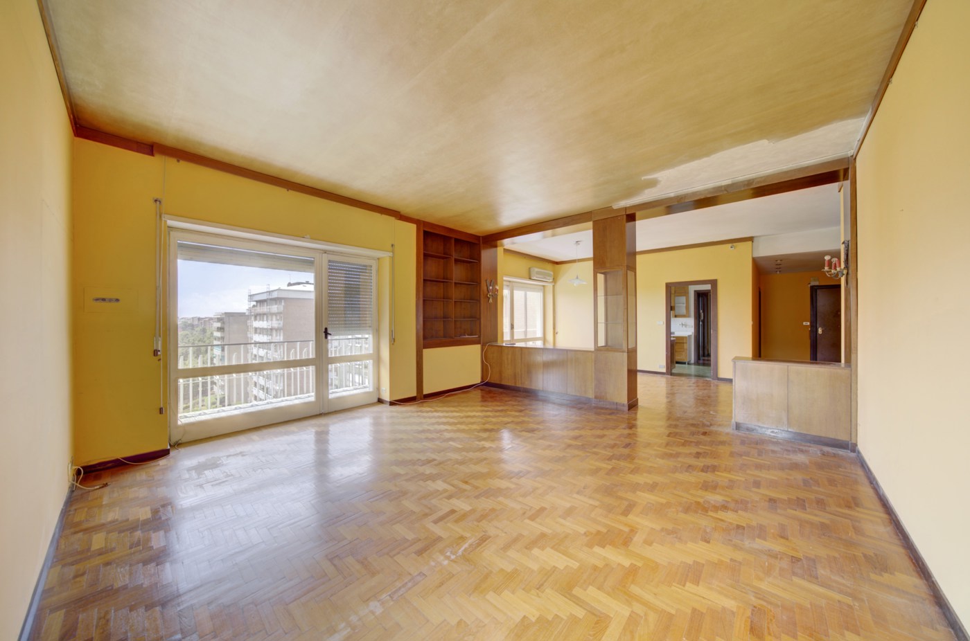 L'immobile composto da: ingresso, cucina, camera, salone doppio, camera matrimoniale, due bagni e ripostiglio.