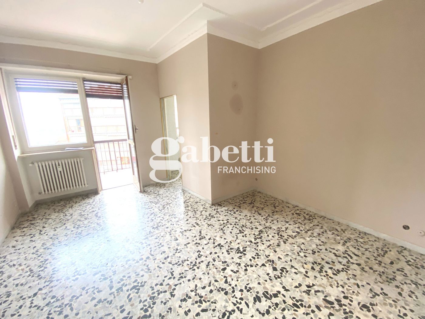 COMPOSIZIONE INTERNA: doppia esposizione est/ ovest, ingresso, soggiorno, cucinino, tre camere, bagno, ripostiglio, un balcone e cantina al piano interrato; CONDIZIONI INTERNE: da ristrutturare; PERCHE SCEGLIERLO? Stabile elevata a 7 piani, edificata nel 1978, in buone condizioni di mantenimento.