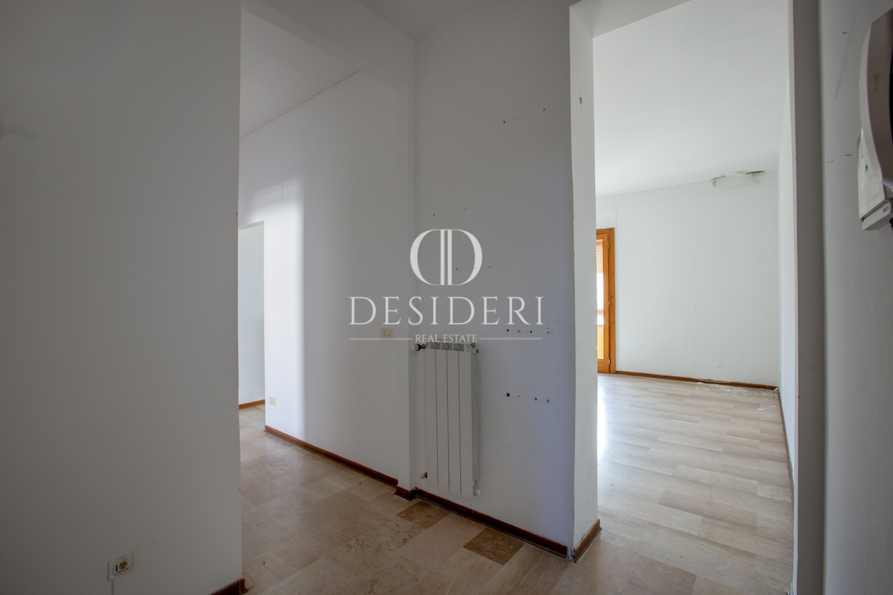 Posto al terzo piano, gode di un'ottima luminosità grazie alla doppia esposizione e segue una pianta regolare: ingresso elegante conduce al salotto, cucina abitabile con abitabile; la restante parte della casa ospita la zona notte con due camere da letto, un bagno e un ripostiglio.