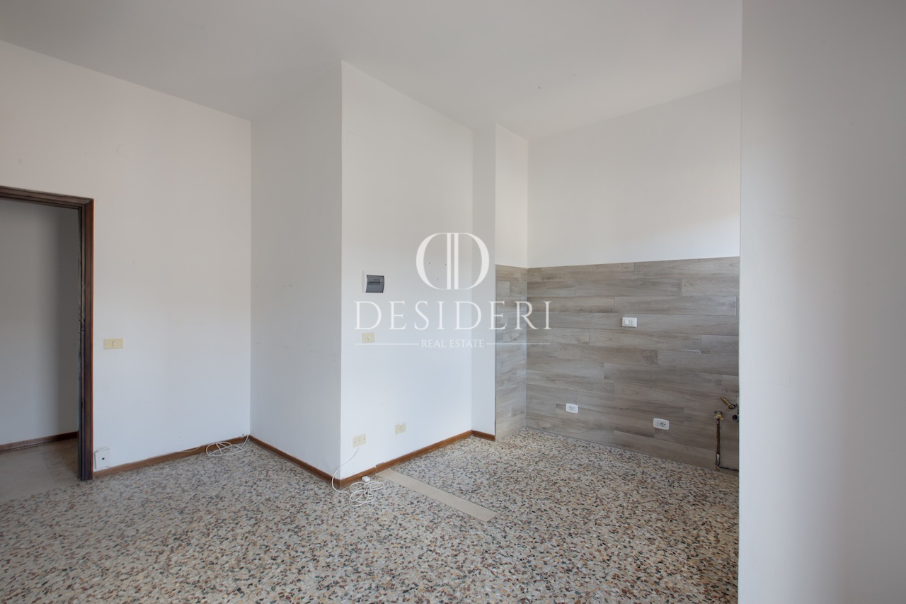 Posto al terzo piano, gode di un'ottima luminosità grazie alla doppia esposizione e segue una pianta regolare: ingresso elegante conduce al salotto, cucina abitabile con abitabile; la restante parte della casa ospita la zona notte con due camere da letto, un bagno e un ripostiglio.