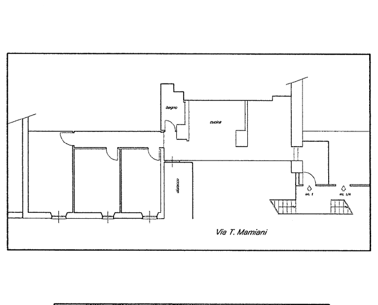 Alloggio ubicato al piano primo e composto da ingresso e da un piccolo vano da cui si accede agli altri locali, scendendo due gradini.
