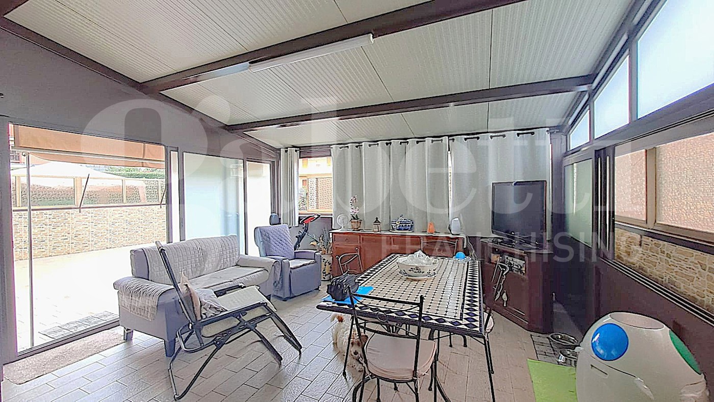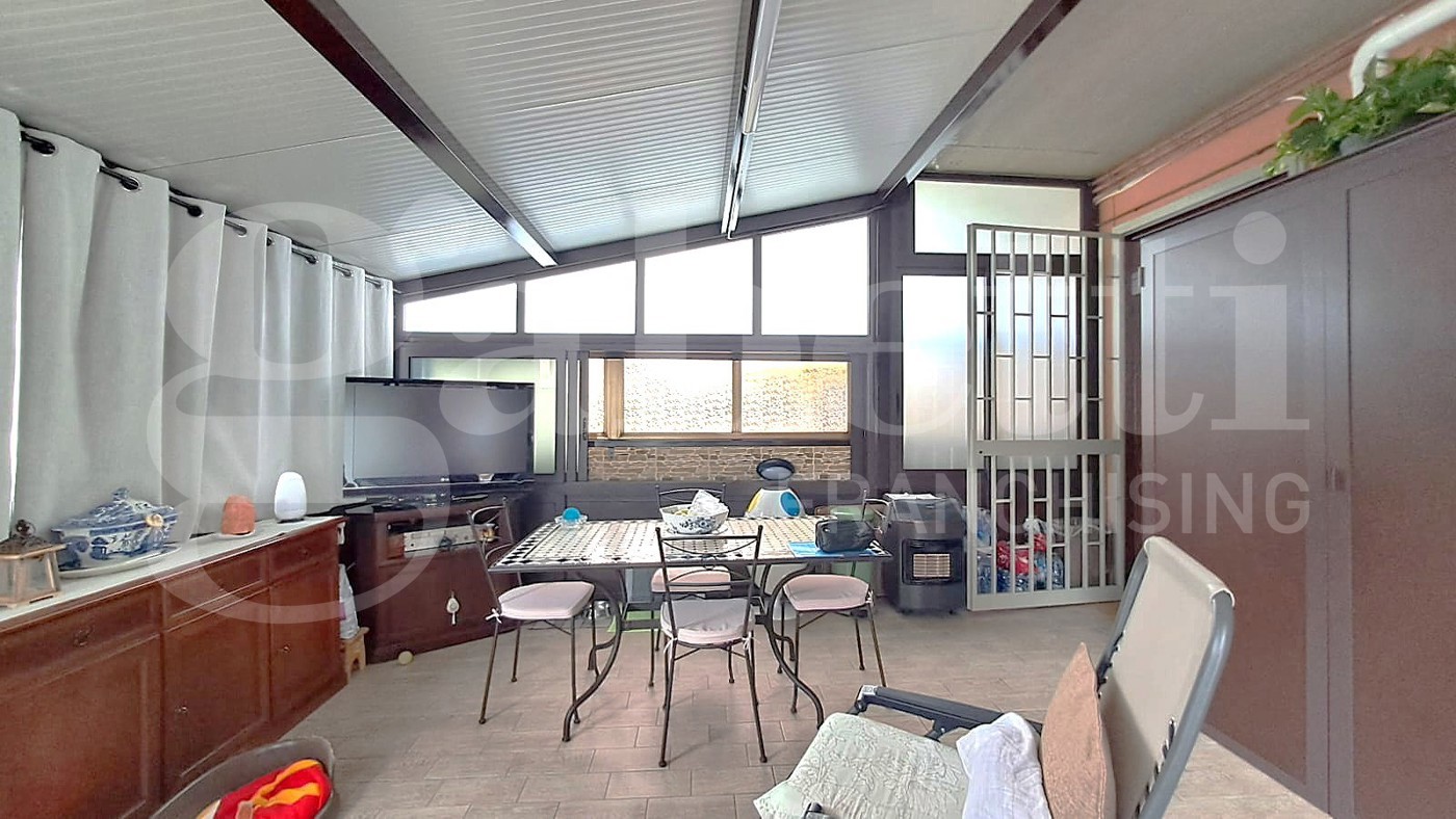 Tra le dotazioni di questo appartamento troviamo un comodissimo doppio ingresso che permette di accedere direttamente in cucina, il riscaldamento autonomo con caldaia a metano, le porte d'ingresso blindate, gli infissi esterni in alluminio con doppio vetro, climatizzatori, posto auto assegnato, grande terrazzo, ed ampia veranda.