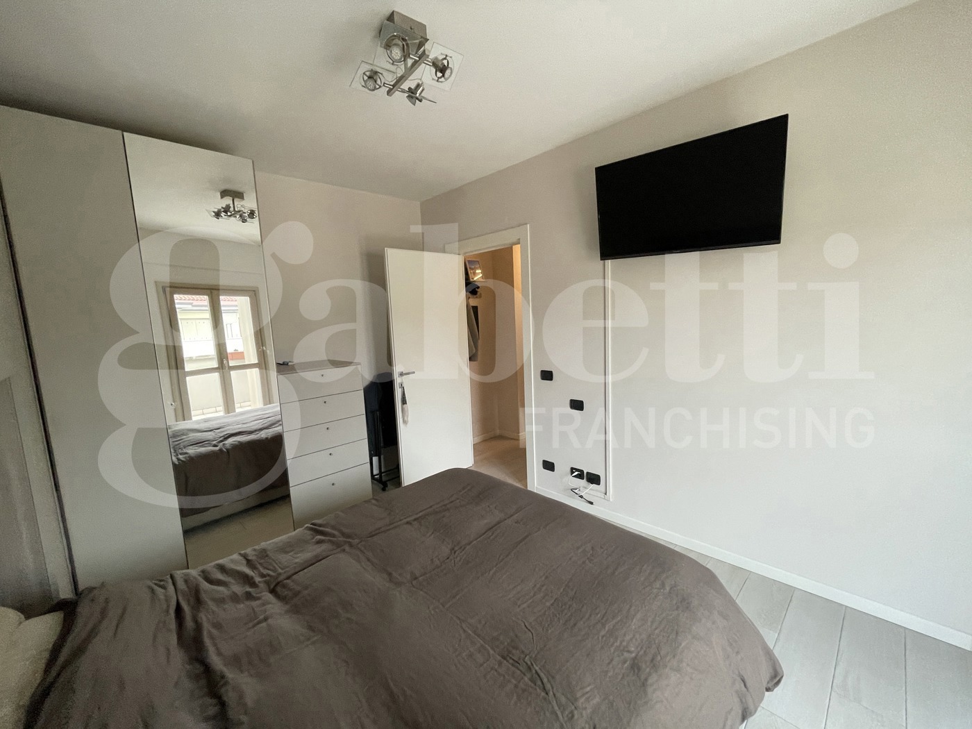 L' attico , che offre spazio e comfort per tutta la famiglia, composto da un luminoso soggiorno con angolo cottura, disimpegno, due camere da letto( una matrimoniale ed una singola) ed un bagno.