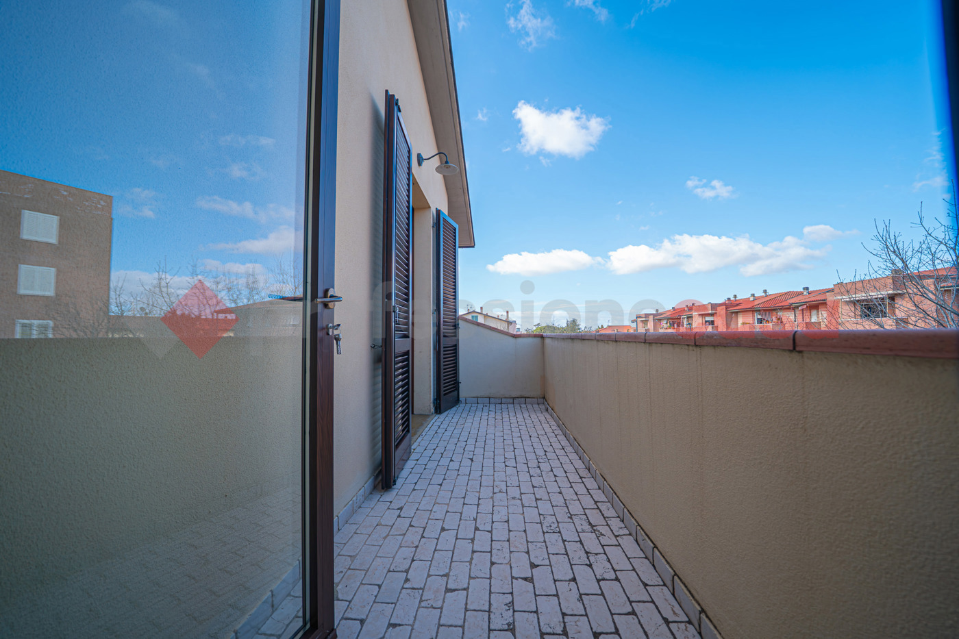 CECINA - CITTA' GIARDINO: Splendido appartamento con ingresso indipendente in palazzina a schiera di 7 unit con 4 locali oltre servizi e garage doppio; affacciata su un ampio parcheggio e la Piazza principale del quartiere con i suoi servizi.
