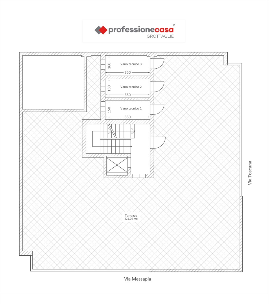 Lappartamento, situato al primo piano con affaccio su Via Messapia, ha una superficie commerciale di 142 mq, di cui 95,70 mq interni.