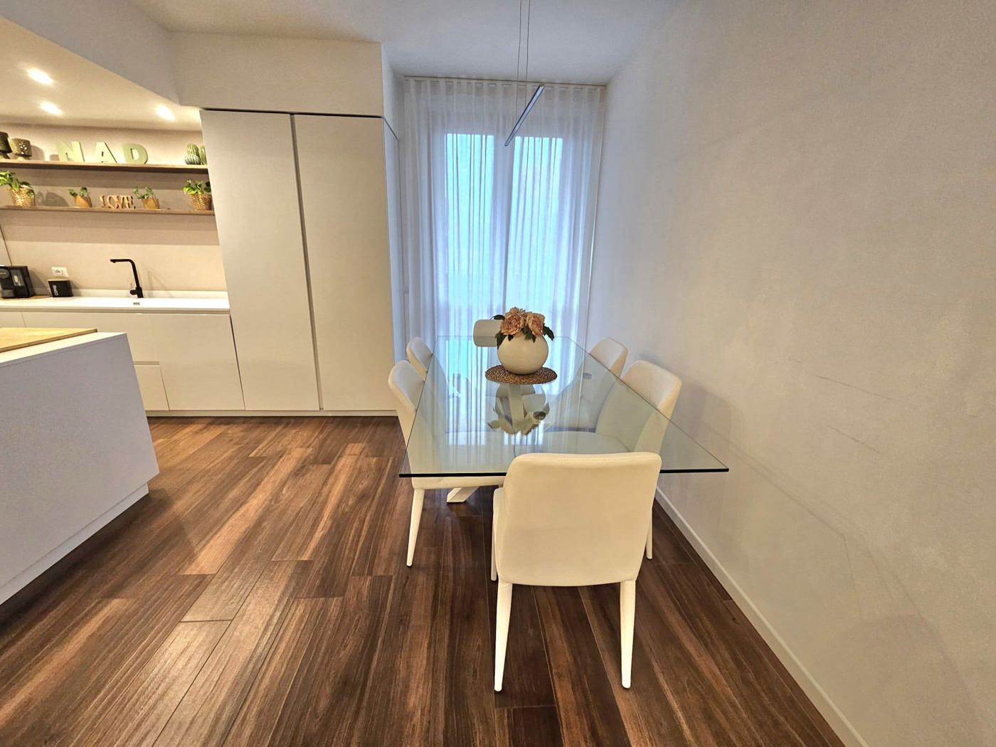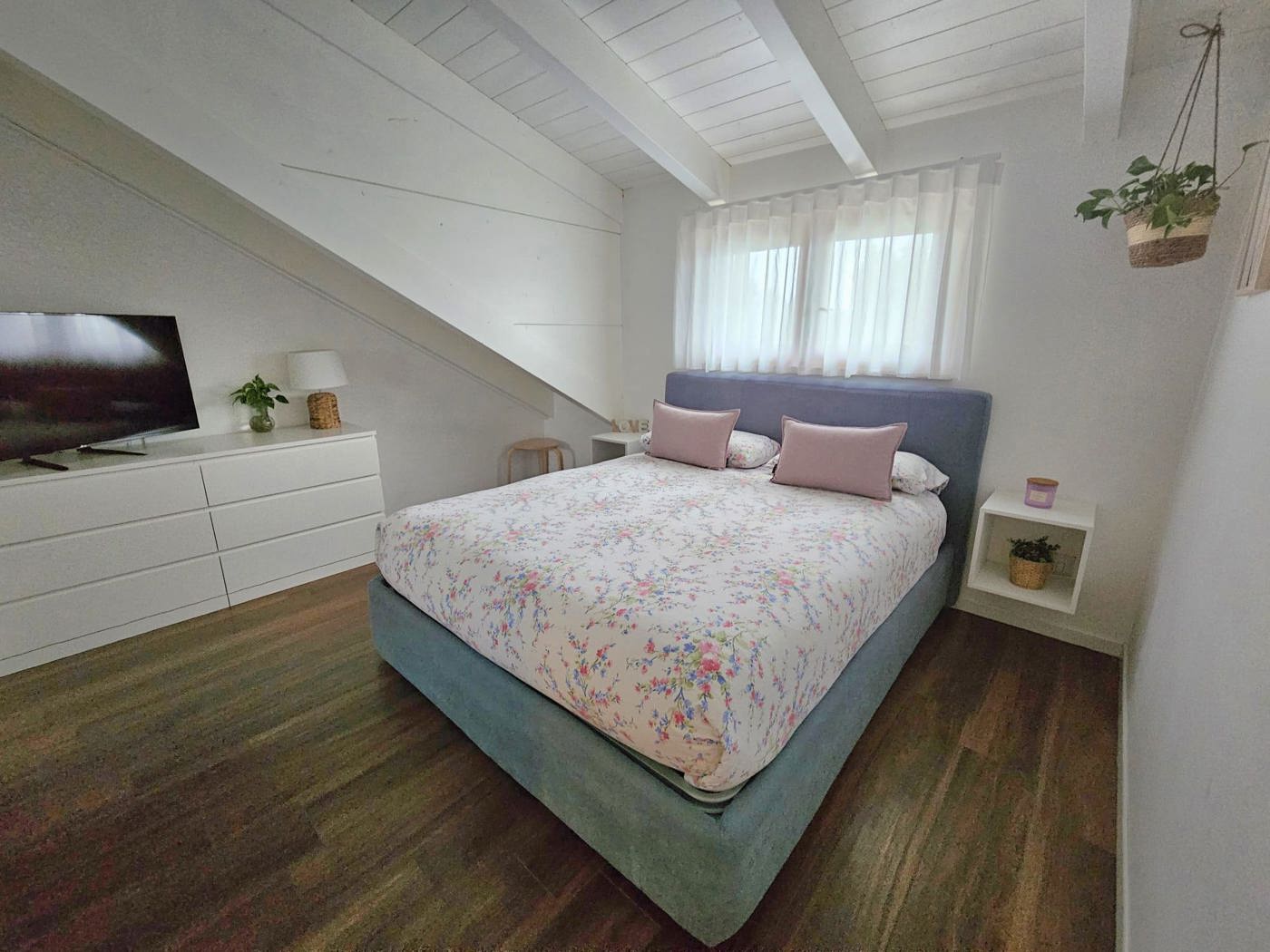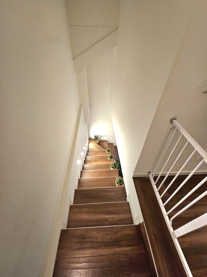 Il primo livello composto da ingresso con ampio e luminoso soggiorno e cucina a vista con accesso diretto al terrazzo di 20mq e il primo bagno, mentre al piano superiore si trova la zona notte composta da camera matrimoniale con cabina armadio, una seconda camera matrimoniale, una cameretta e un secondo bagno nella zona notte.