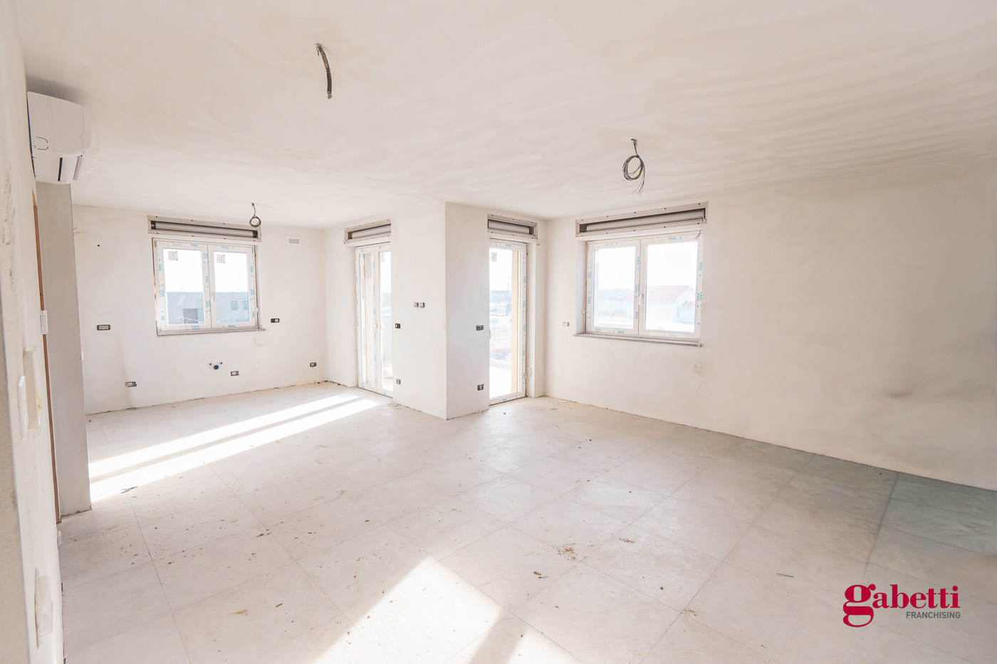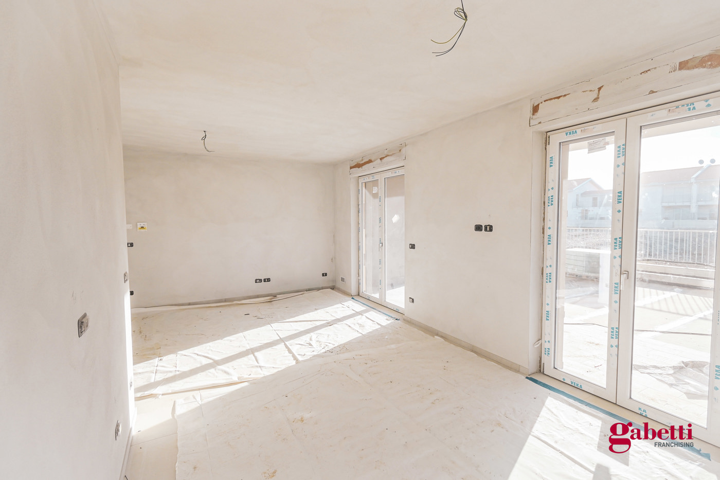 Situato al piano secondo di un complesso residenziale signorile in costruzione, l'appartamento si compone con ingresso su zona giorno open - space, disimpegno, due camere da letto, due bagni, ripostiglio, due balconi ed il terrazzo ad uso esclusivo.