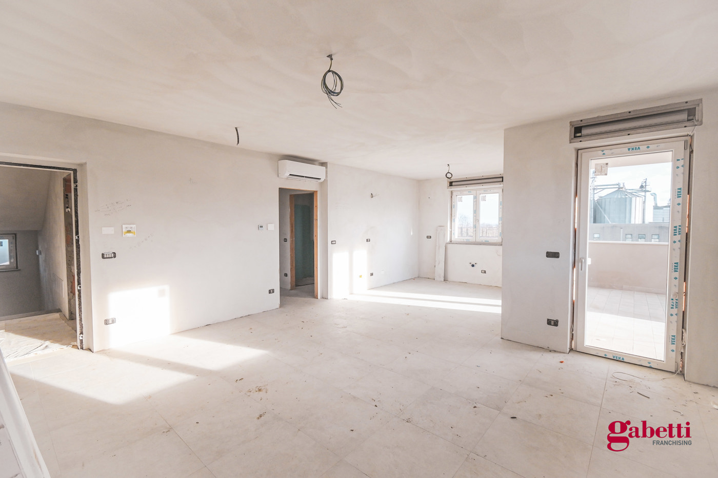 Situato al piano terzo di un complesso residenziale signorile in costruzione, l'appartamento si compone con ingresso su zona giorno open - space, disimpegno, due camere da letto, due bagni, ripostiglio, due balconi ed il terrazzo ad uso esclusivo.