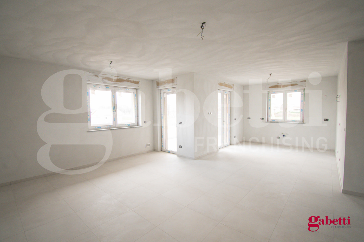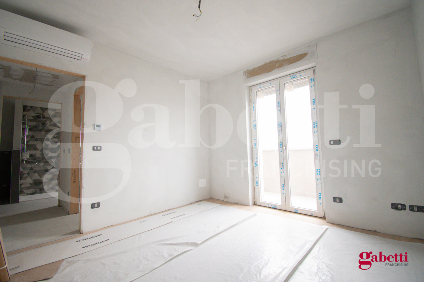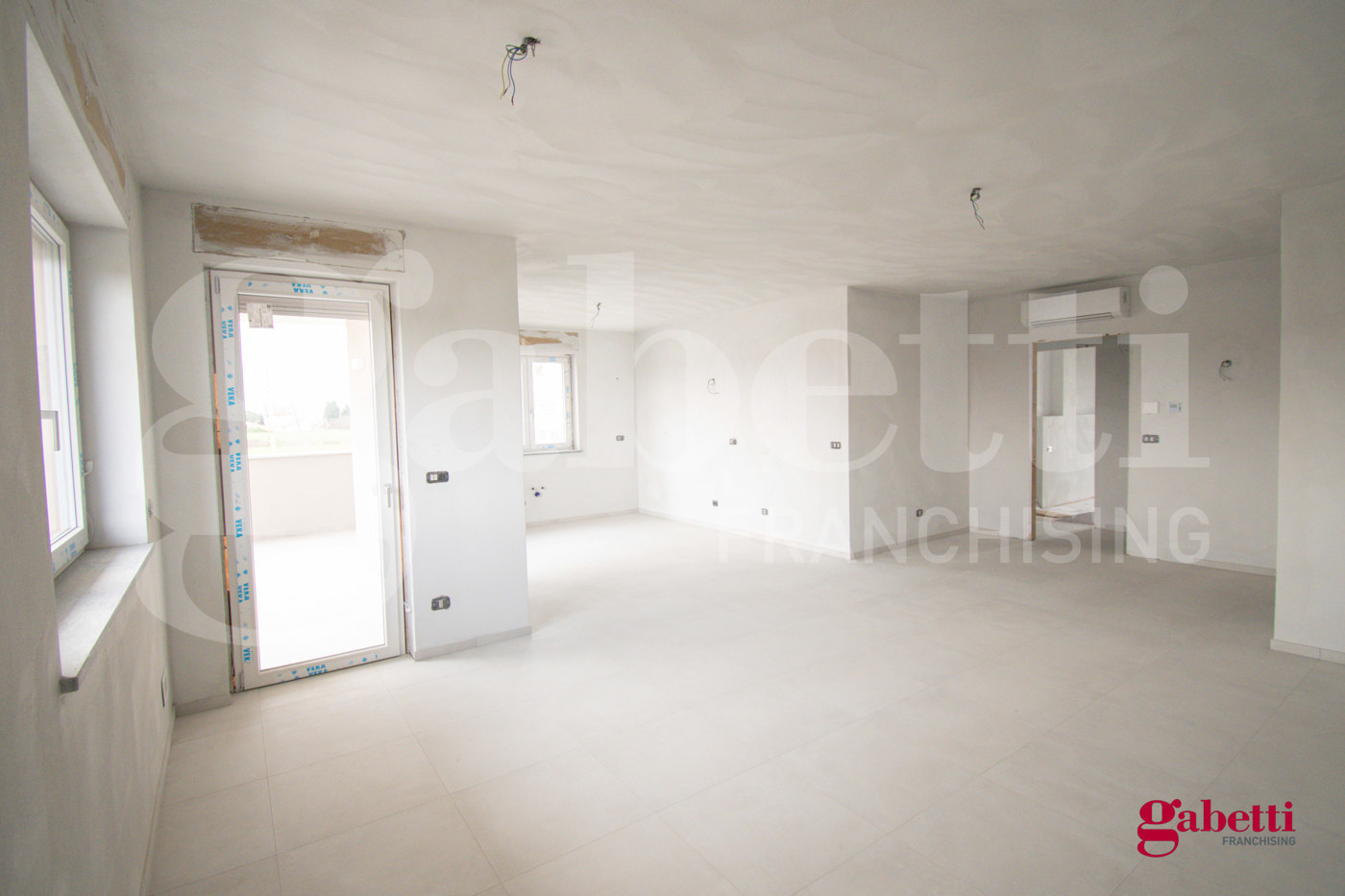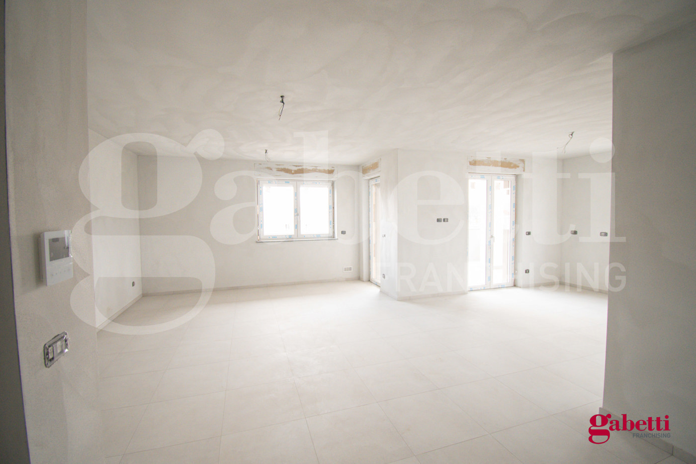 Situato al piano secondo di un complesso residenziale signorile in costruzione, l'appartamento si compone con ingresso su zona giorno open - space, disimpegno, due camere da letto, due bagni, ripostiglio, due balconi ed il terrazzo ad uso esclusivo.