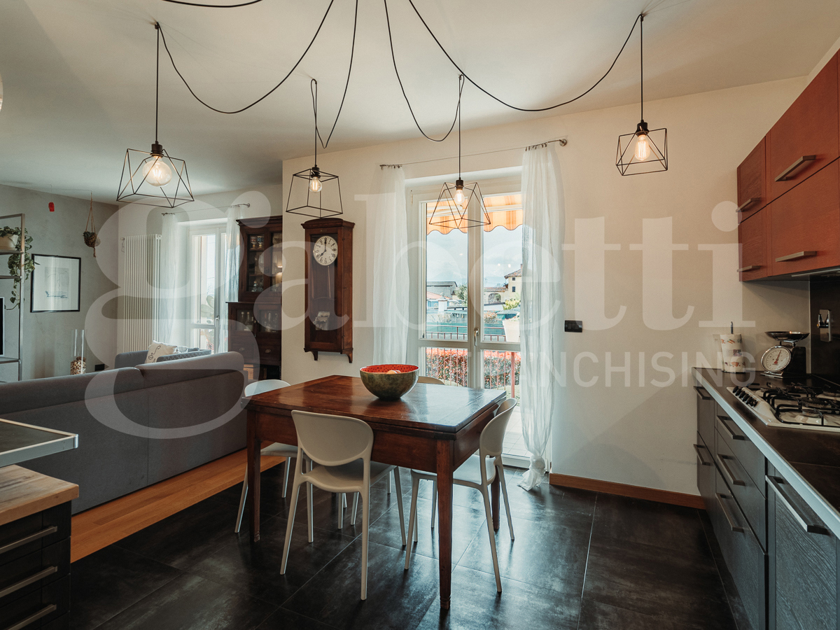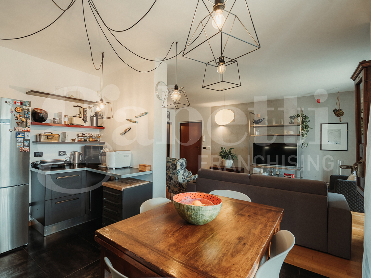 Lappartamento un quadrilocale luminoso e spazioso, con un ingresso che si apre su una zona giorno ariosa, dove la cucina si affaccia sul soggiorno come un invito alla condivisione.