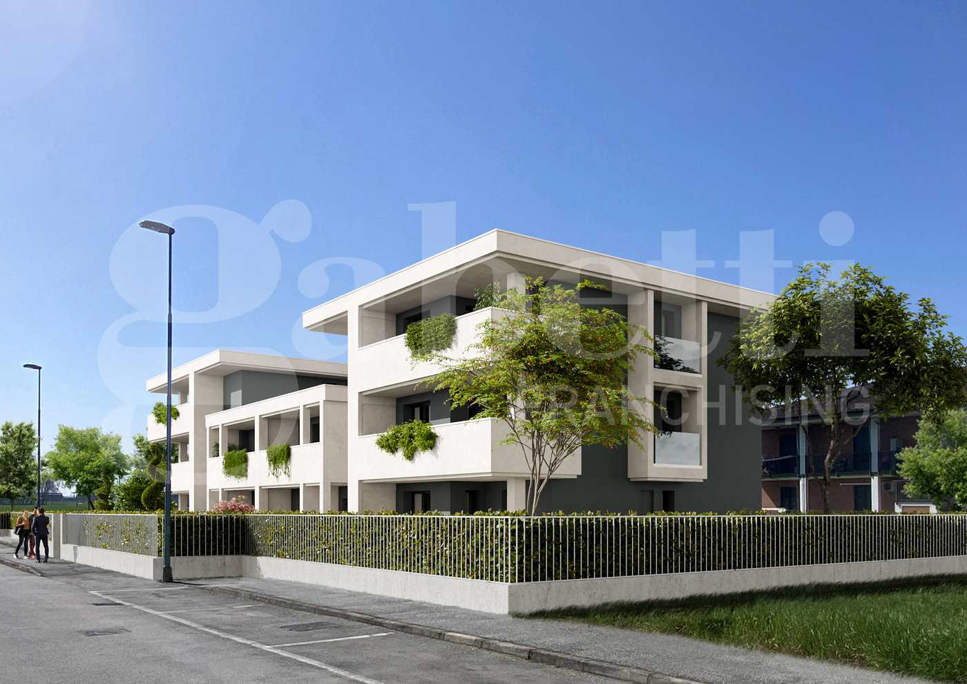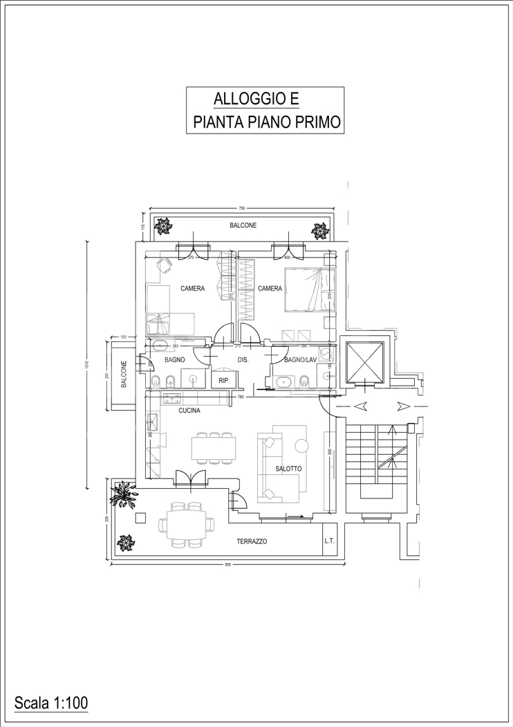 Situato al piano primo di un complesso residenziale signorile di prossima realizzazione, l'appartamento si compone con ingresso su soggiorno, cucina abitabile, disimpegno, due camere da letto, due bagni, ripostiglio, un terrazzo esclusivo e due balconi.