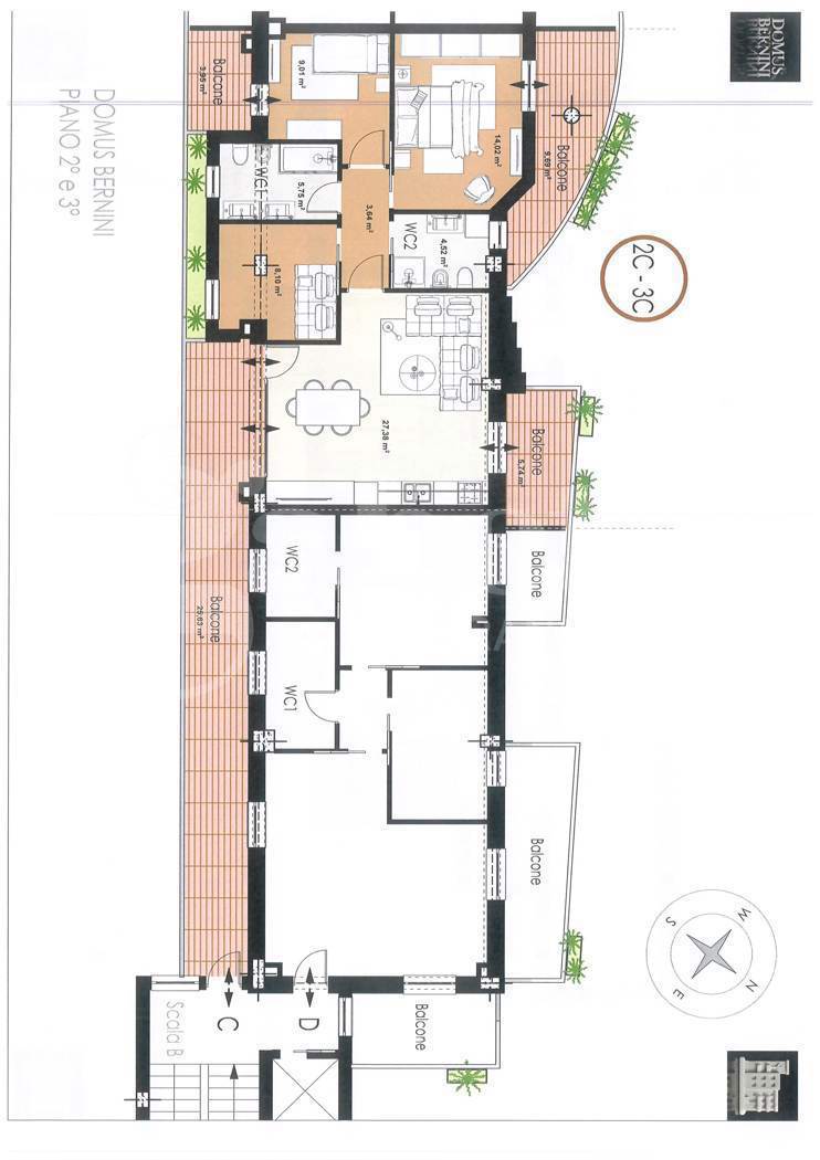 L'appartamento, situato al secondo piano, dispone di un ampio soggiorno con angolo cottura e accesso al balcone, una camera matrimoniale con balcone e due camerette, una delle quali con balcone privato, e due bagni finestrati.