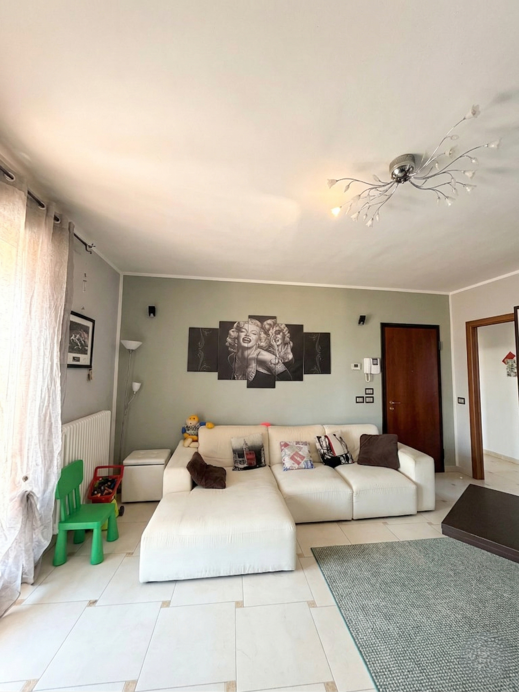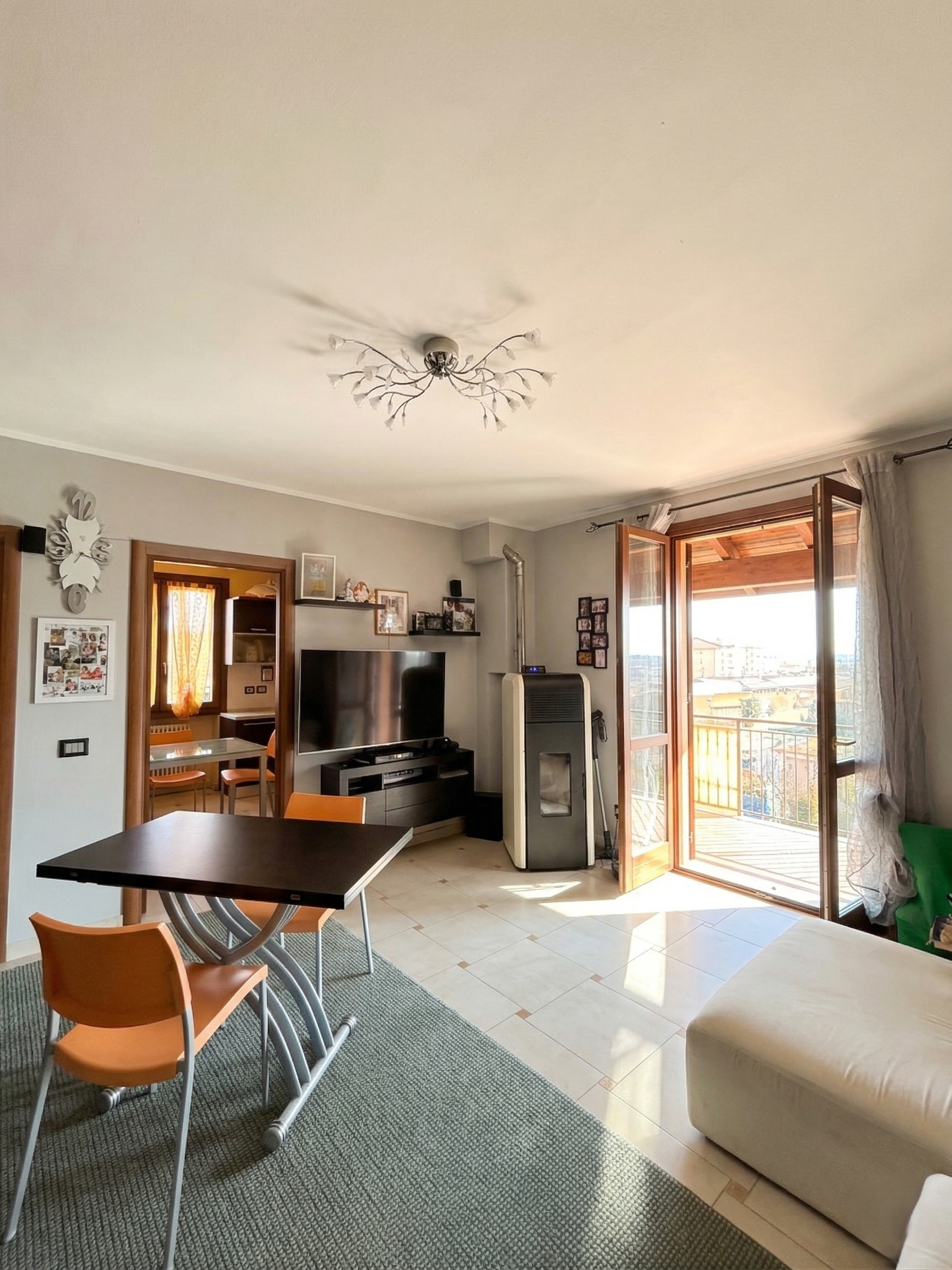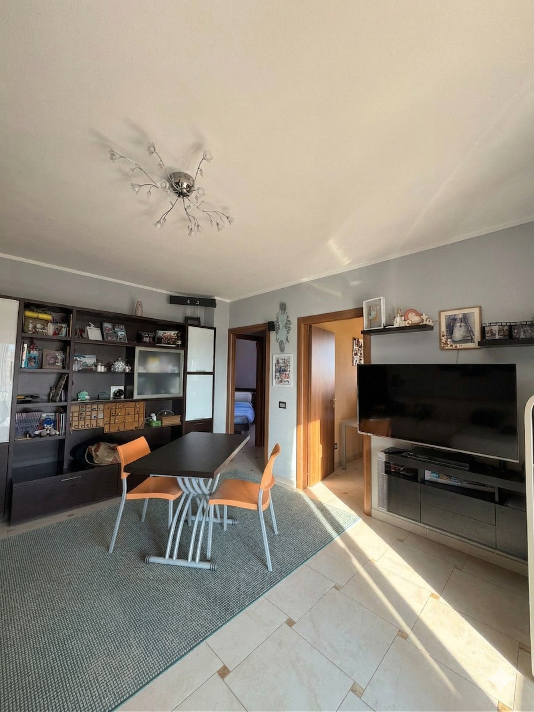 Varcata la soglia, si viene accolti da una zona giorno luminosa e ben organizzata: il salotto, spazioso e accogliente, dialoga con una cucina abitabile pensata per chi ama vivere la casa nel quotidiano.