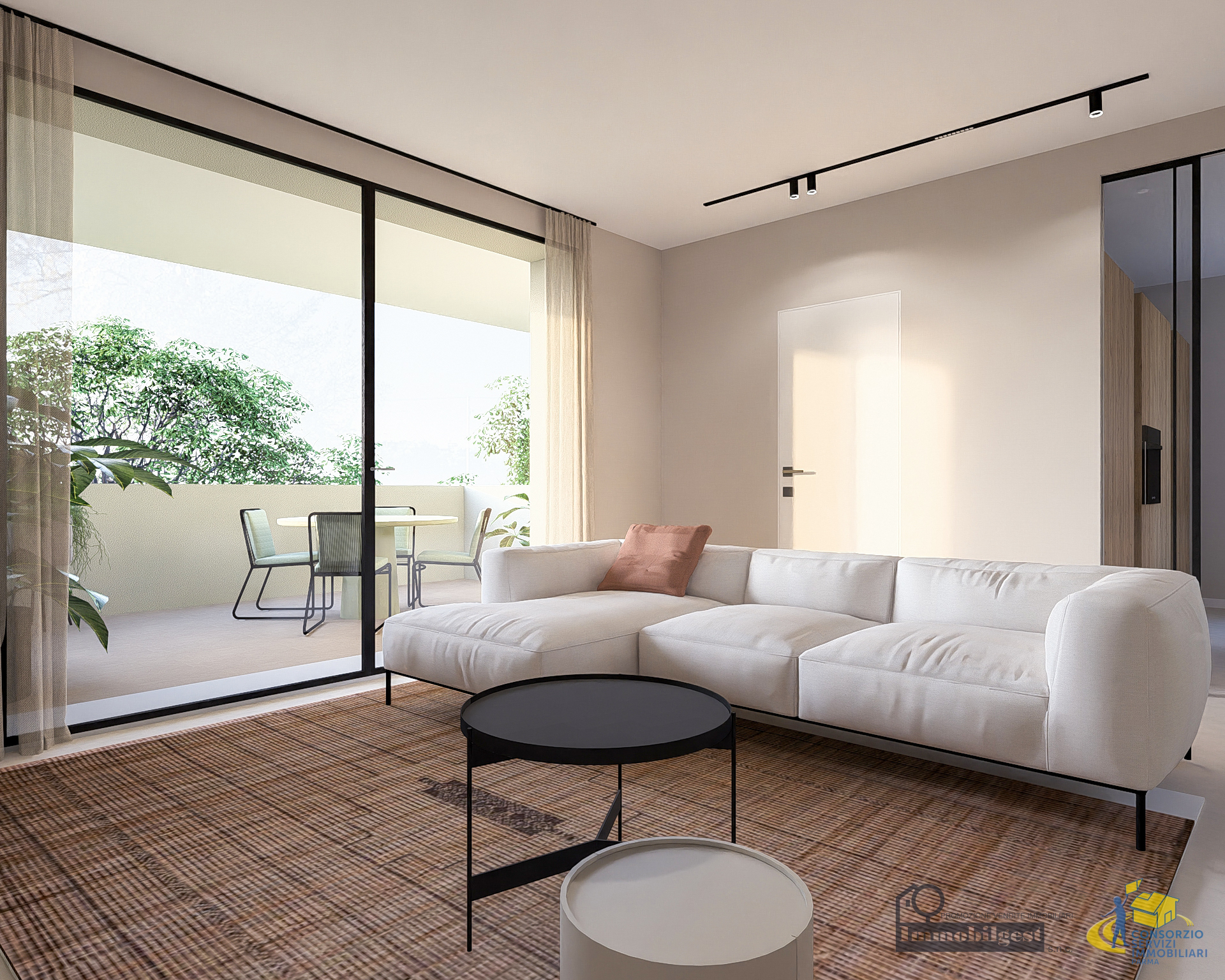 NUOVA COSTRUZIONE Via Spezia, prenotiamo appartamento duplex con giardino di 270 mq su due lati. Disposizione: Piano terra con ampio soggiorno con vista giardino, portico di 12 mq, cucina abitabile mq 14 e bagno con finestra.