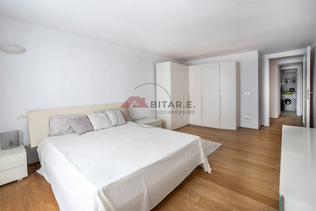 La zona notte attuale comprende due camere matrimoniali, un disimpegno con guardaroba/ripostiglio, tre bagni (uno con vasca, uno con doccia e un bagno di servizio) e una lavanderia dedicata.