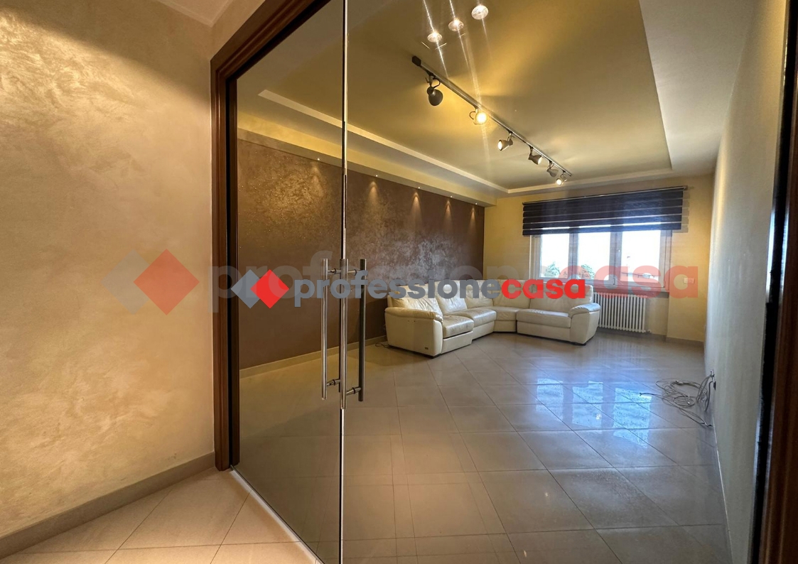 L'immobile posto al quinto piano di una palazzina servita da ascensore ed composto da: ingresso, soggiorno, cucina abitabile con veranda, studio con balcone, due camere da letto e due bagni.