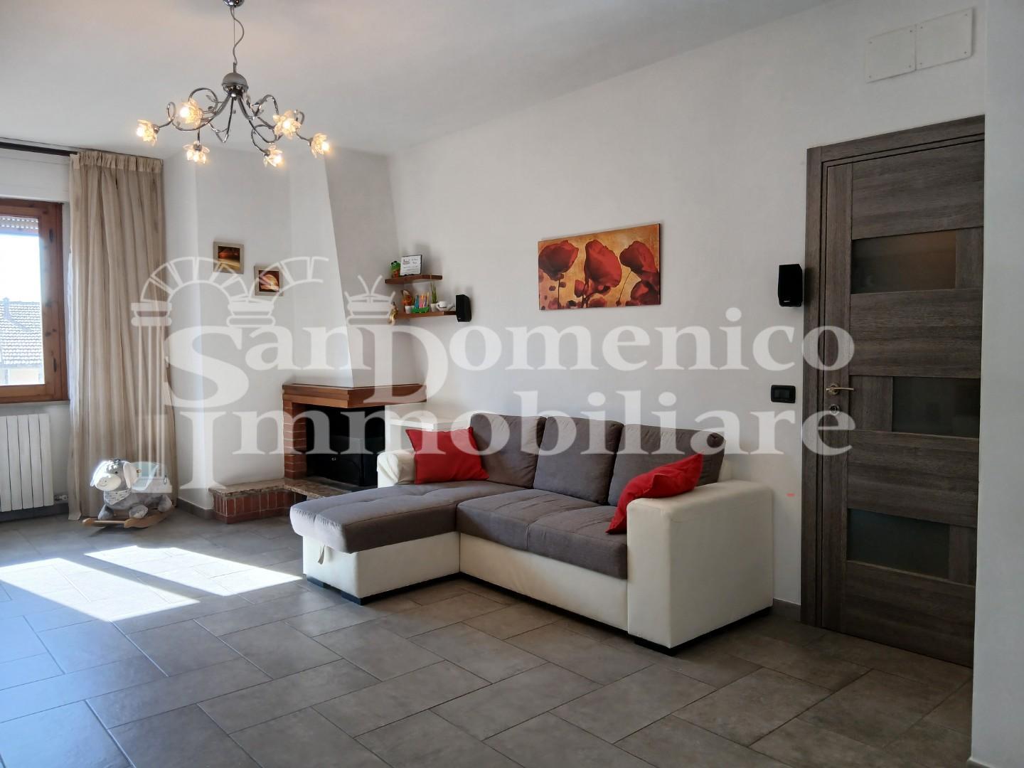 Al suo interno l'appartamento è composto da: ingresso, la cucina abitabile che offre uno spazio conviviale perfetto per pranzi e cene in famiglia, balcone verandato, spazioso soggiorno con camino, proseguendo troviamo il disimpegno che ci porta al reparto notte dove troviamo una camera matrimoniale, una camera media con balcone, ripostiglio e bagno con doccia e finestra.