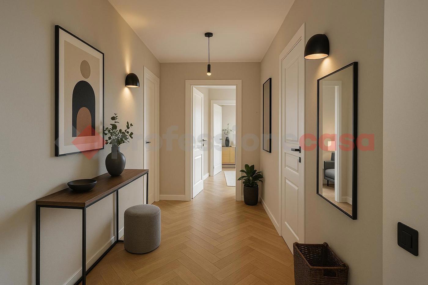 Gli interni vantano pavimenti prestigiosi appena posati e bagni piastrellati nuovi, donando all'appartamento un'aura sofisticata e armoniosa.