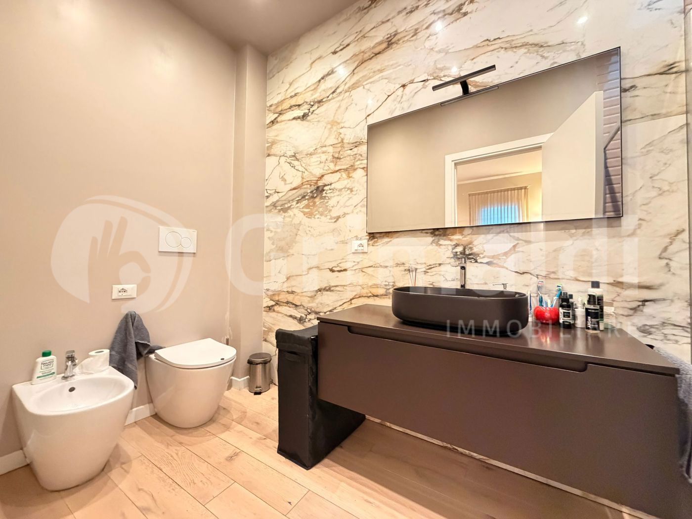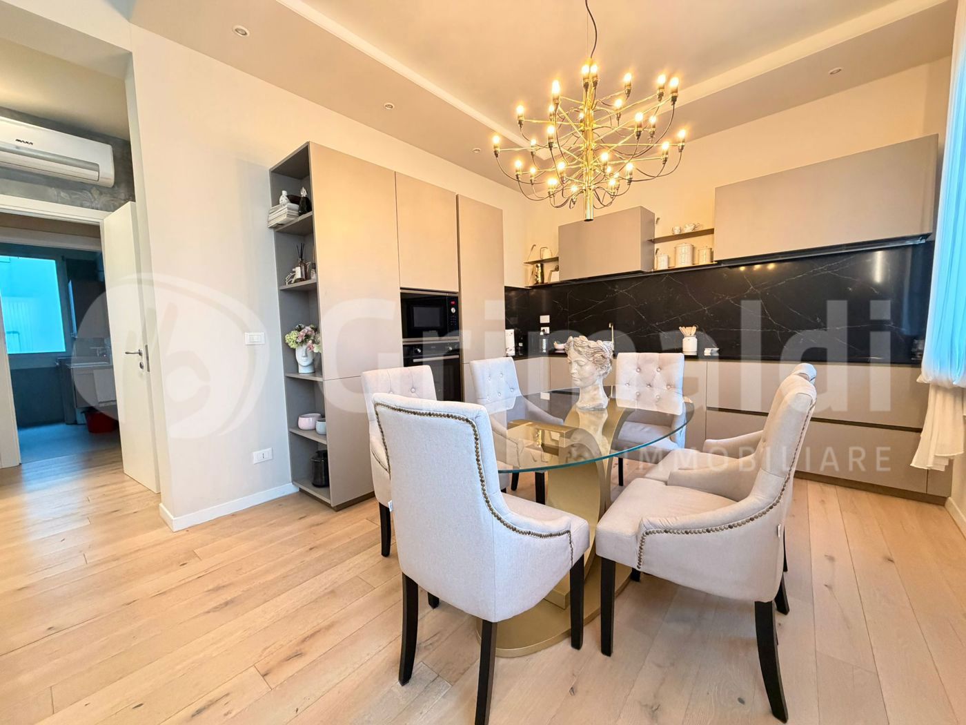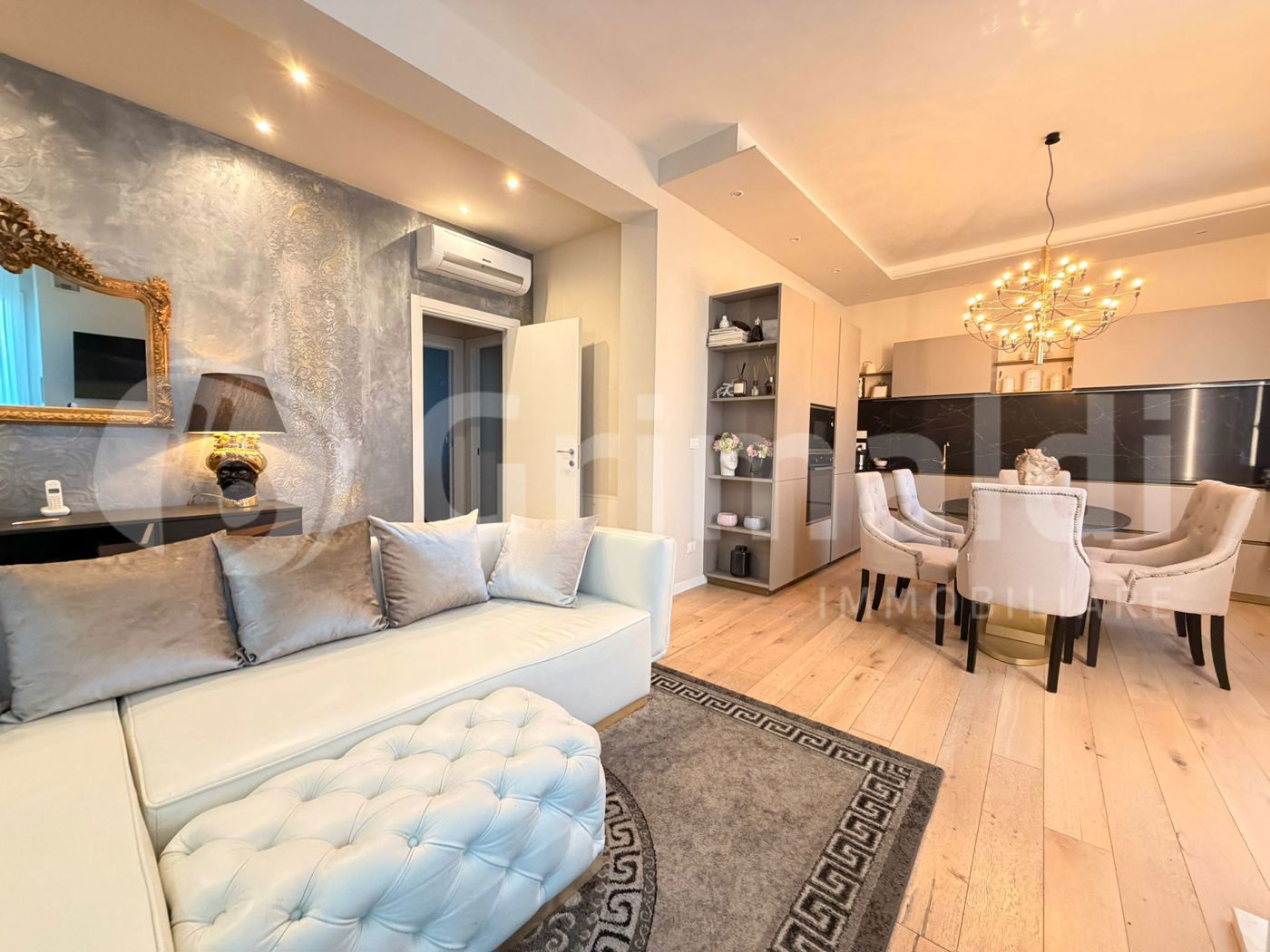 Tutto l'appartamento riscaldato da riscaldamento a pavimento, bellissimo parquet, aria condizionata in tutte le camere.