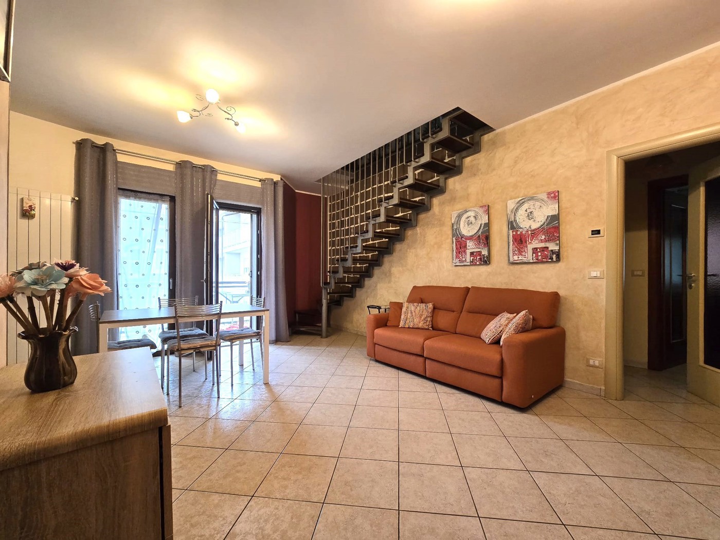 Lappartamento si sviluppa su due livelli, cos suddivisi: Piano Secondo: Ingresso diretto nella zona giorno open space con soggiorno e cucina a vista ed uscita sul balcone abitabile con caldaia esterna, camera matrimoniale e bagno finestrato con doccia.