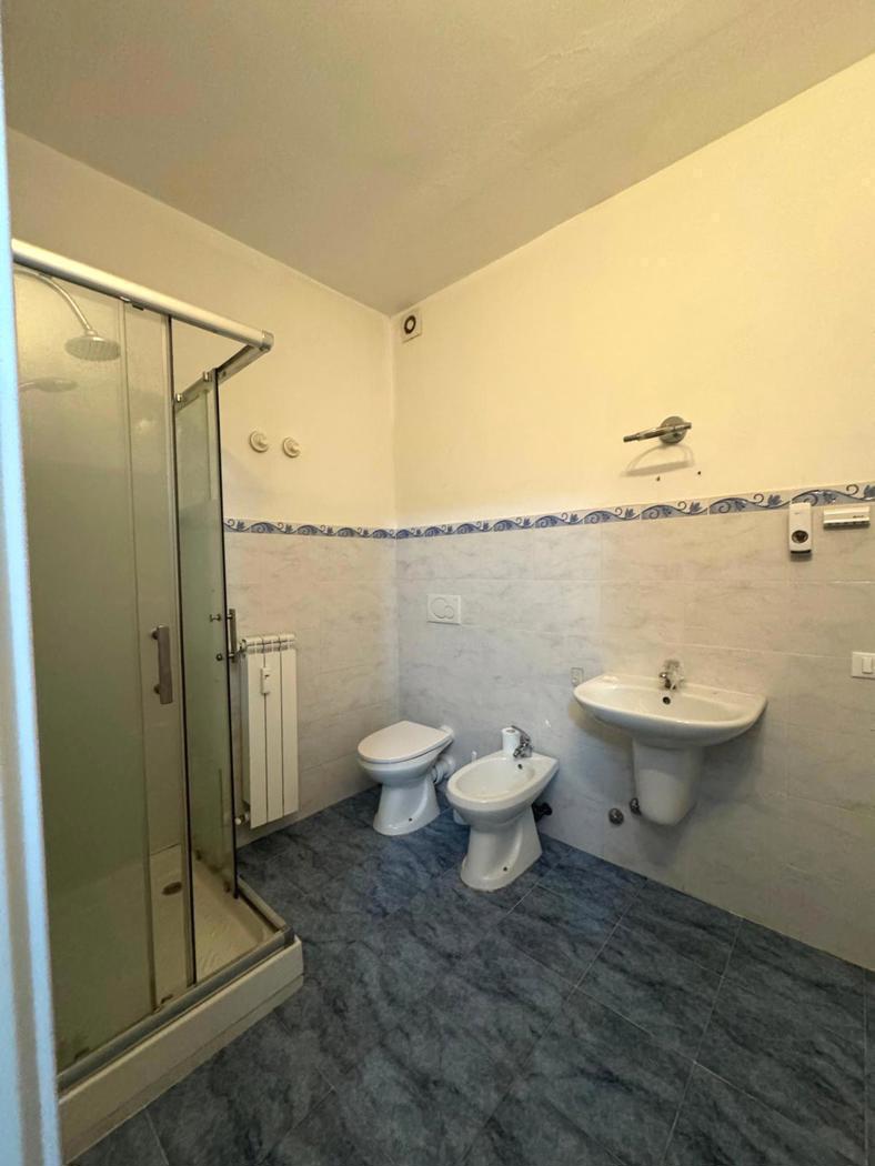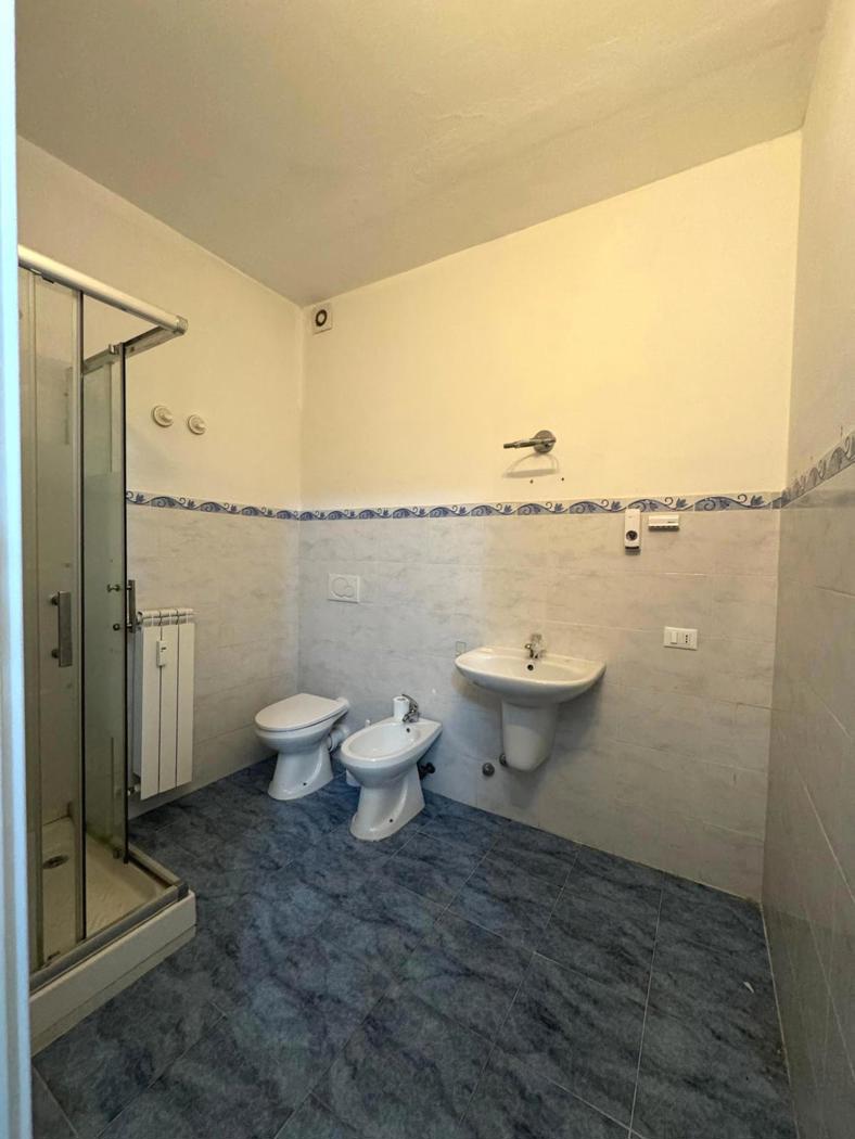 Il bagno privo di finestra ma ben areato e dotato di box doccia.