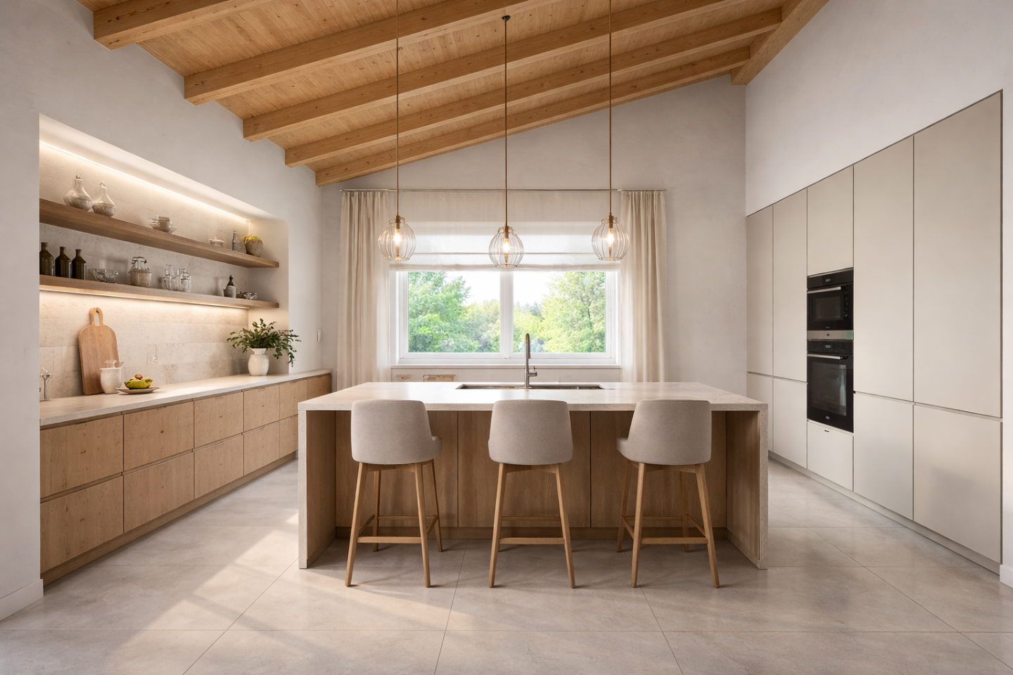 Limmobile si compone di ampio soggiorno, cucina abitabile, due camere da letto e due bagni di cui uno con zona lavanderia . Le grandi finestre e i soffitti alti con travi in legno a vista donano agli ambienti grande luminosità e unatmosfera calda e accogliente.