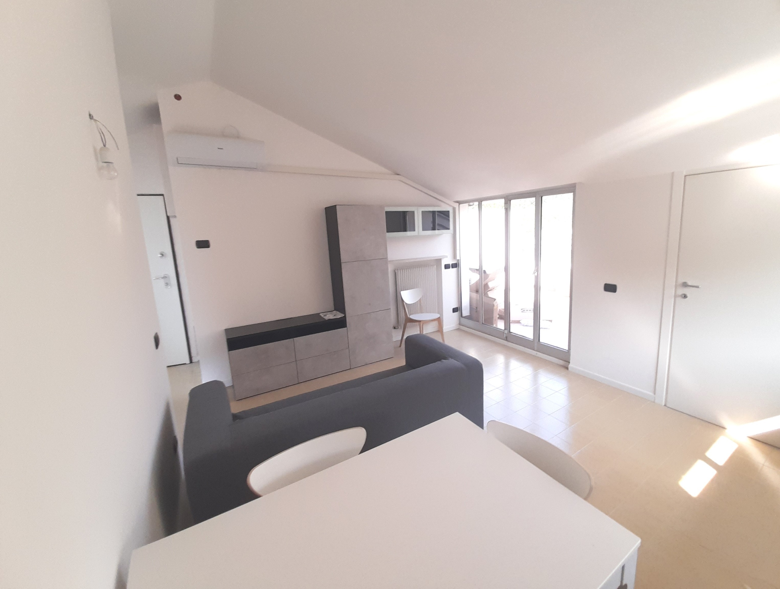 L'appartamento è stato completamente ristrutturato e si compone da ingresso su soggiorno con angolo cottura e terrazzo, disimpegno zona notte, una camera da letto matrimoniale, una camera da letto singola e un servizio.