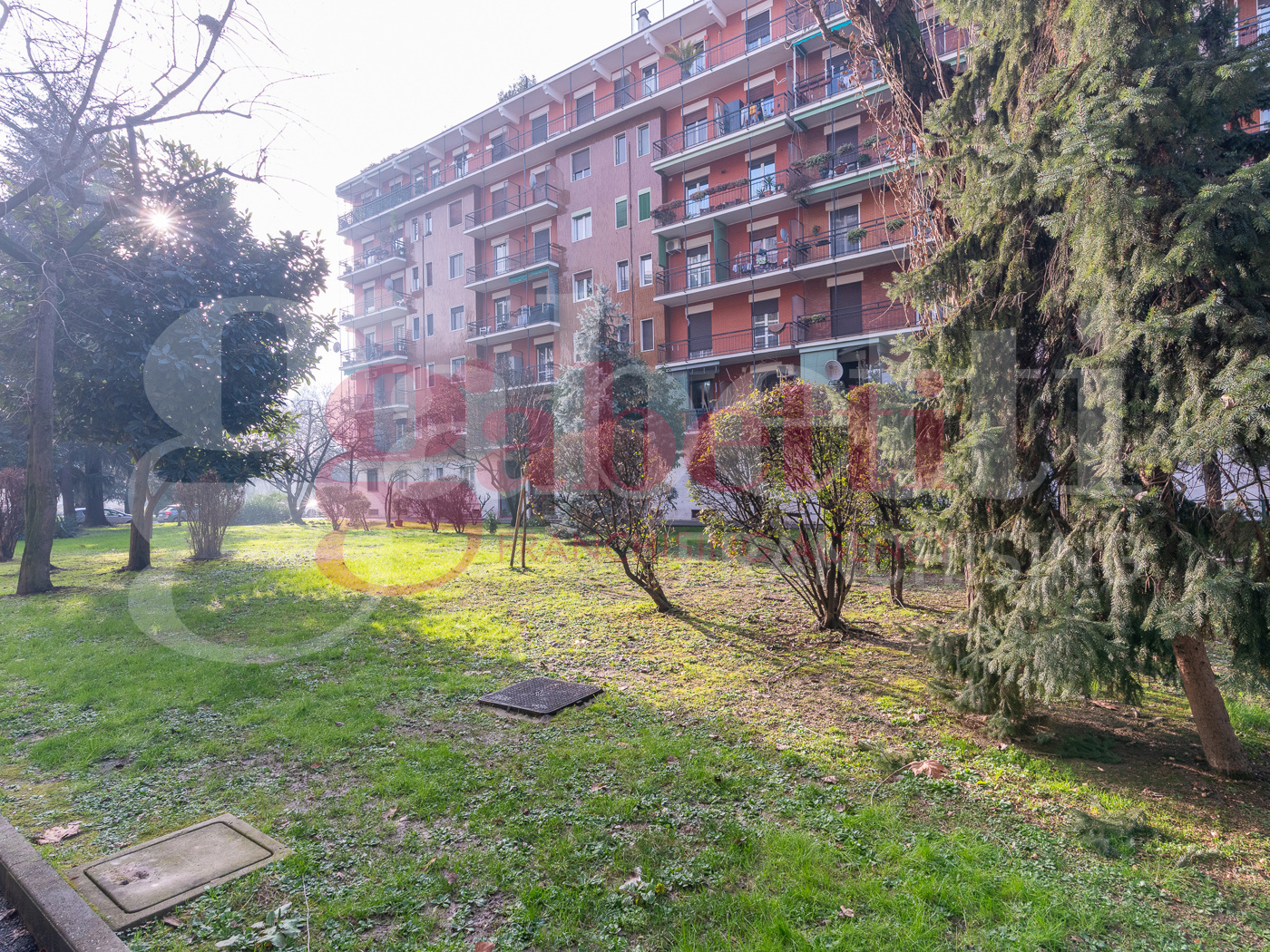Rif. 01/26 Gabetti Santa Rita / Famagosta Via Fra Cristoforo in stabile signorile con ampio e curato giardino condominiale, ascensore e servizio di portineria giornaliero proponiamo ampio trilocale di 86 mq ca. posto ad un piano intermedio cos composto: disimpegno d'ingresso ampia sala sapientemente separata da una parete a scomparsa dalla quale si accede alla zona studio/ seconda camera, balcone, cucina abitabile con accesso al secondo balcone, camera matrimoniale con spaziosa cabina armadio, ripostiglio, anti bagno e bagno finestrato.