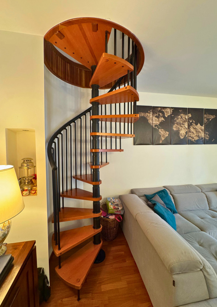 Salendo la particolare e di design scala a chiocciola giungiamo al secondo piano dove ci accoglie la splendida e confortevole suite, molto luminosa con ben due finestre velux apribili sul tetto e una finestra con affaccio sul prospetto frontale della palazzina.