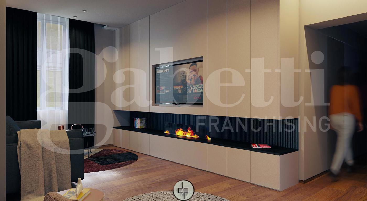 Finiture eleganti e contemporanee, pavimento in legno uniforme in tutti gli ambienti, infissi bianchi in legno.