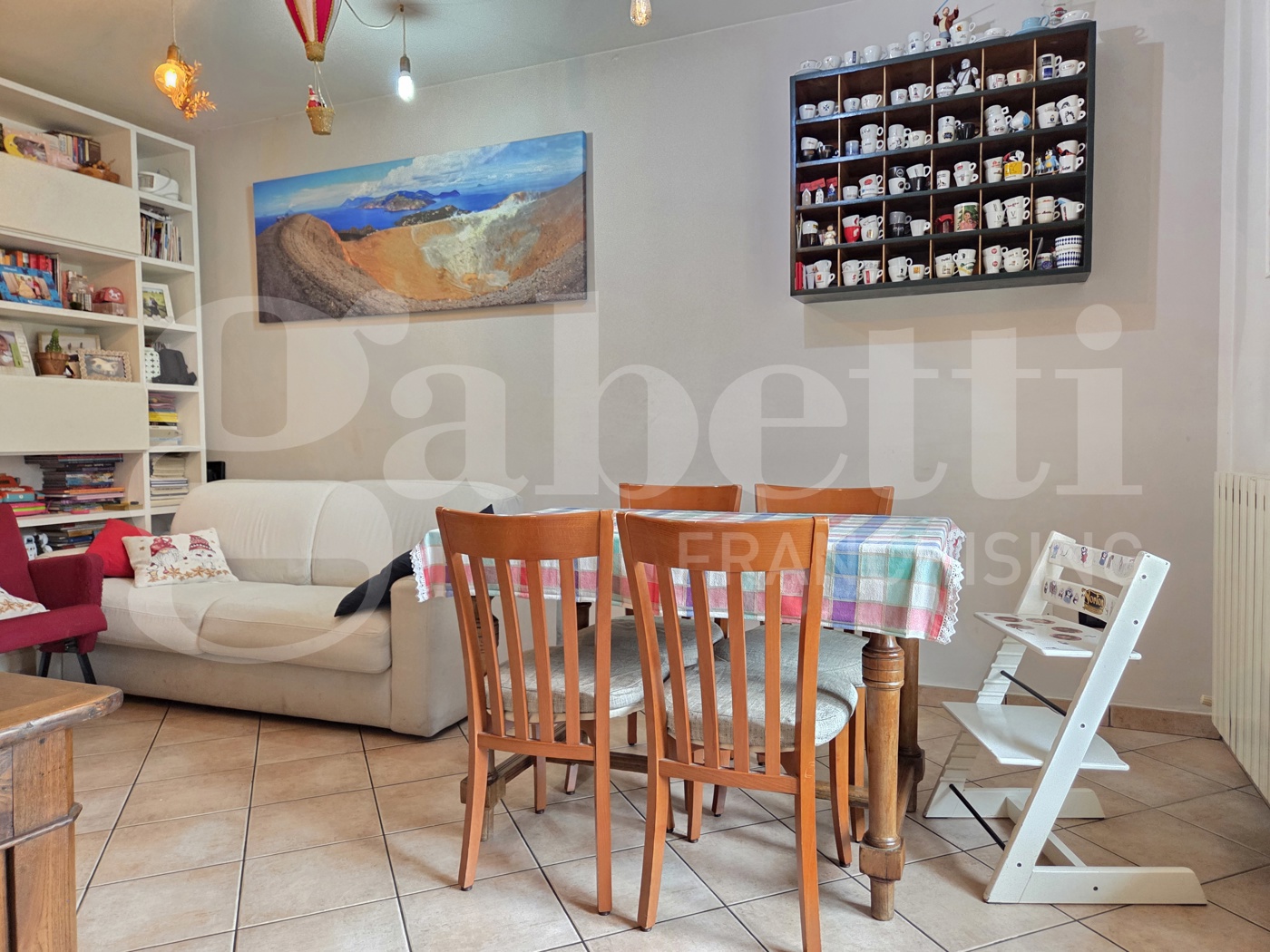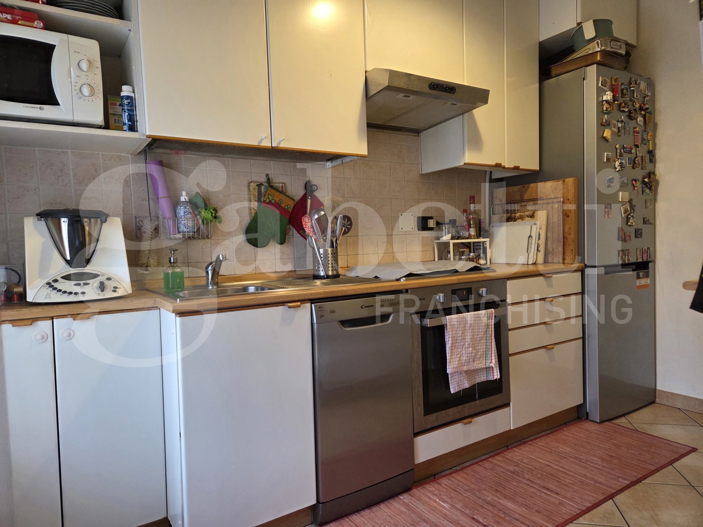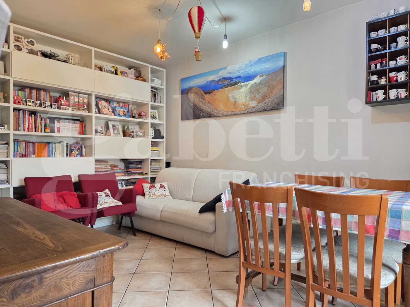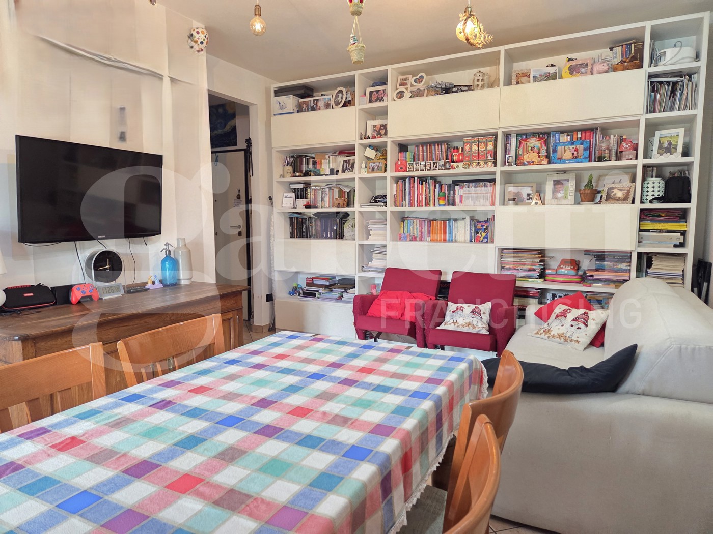 COmodissimo al centro del paese e a tutti i servizi proponiamo appartamento in ottime condizioni composto da sala con balcone, cucina, due camere, ripostiglio, terrazzino coperto abitabile, bagno cantina e ampio garage.