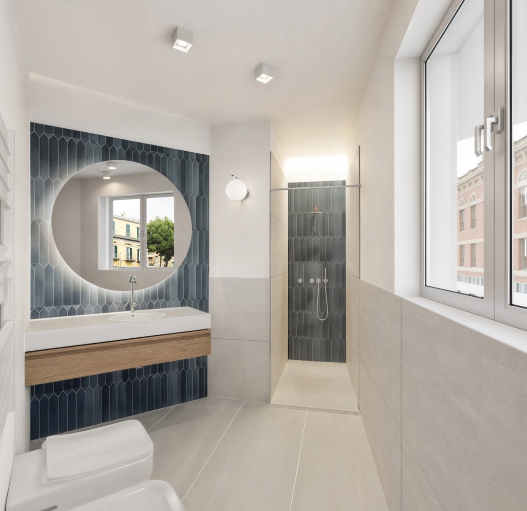 L'immobile ha una quadratura di 100 mq ed composto da: ingresso, salone doppio con cucina a vista, due camere da letto, doppi servizi di cui uno in camera, ripostiglio, oltre ampia balconata.