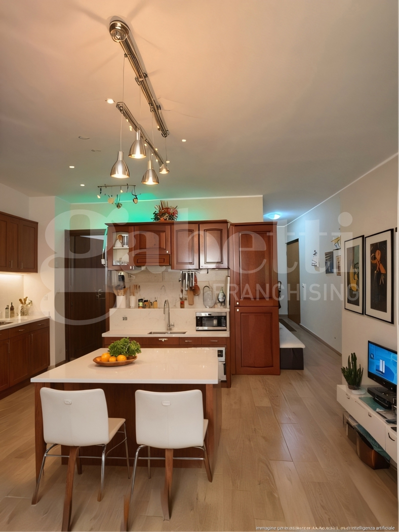 L'immobile misura circa 85 mq ed offre un ingresso, un luminoso soggiorno con cucina a vista ed una camera pluriuso; la zona notte composta da disimpegno, camera matrimoniale con bagno privato finestrato con vasca, una cameretta e un bagno di servizio.