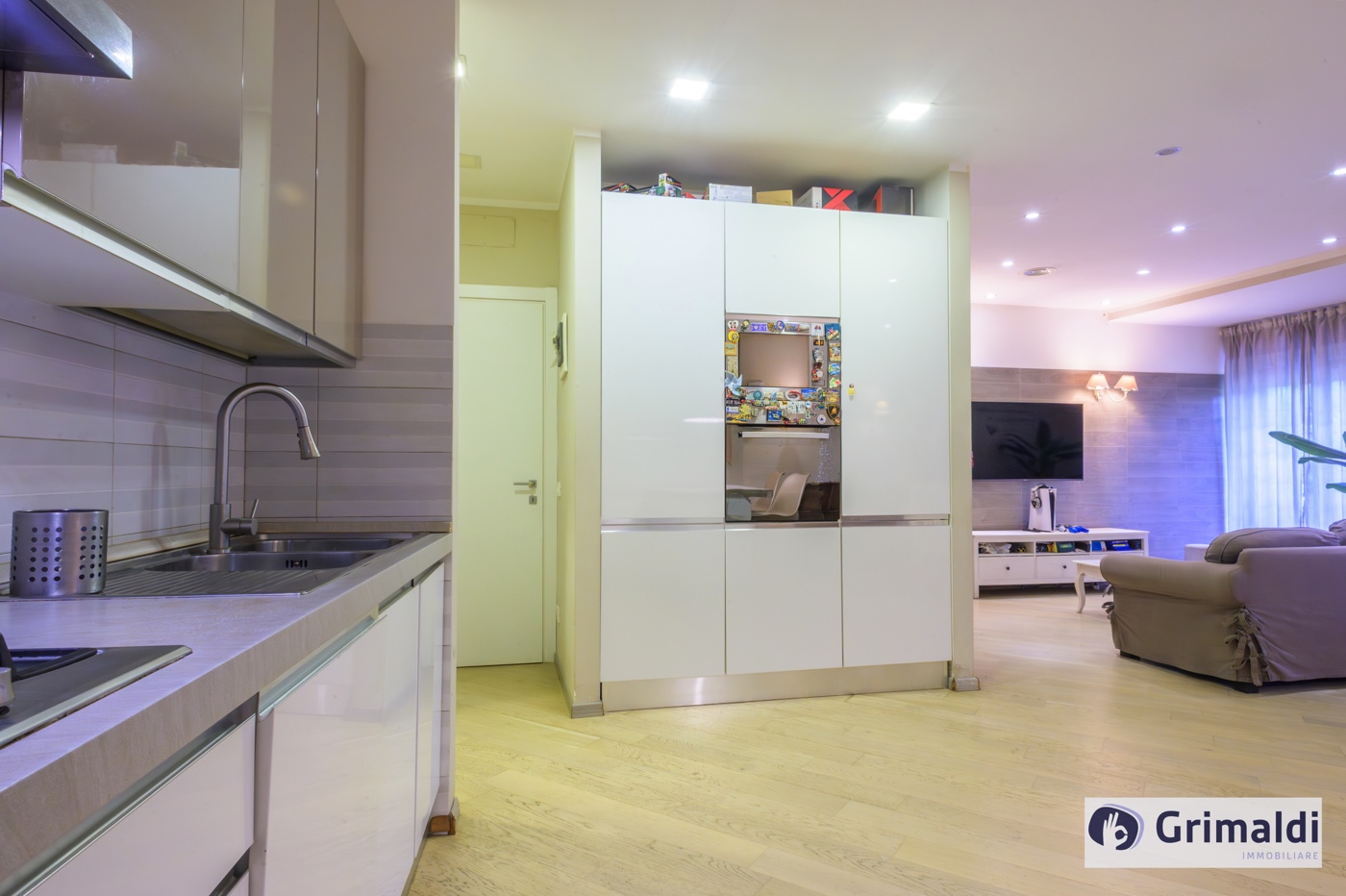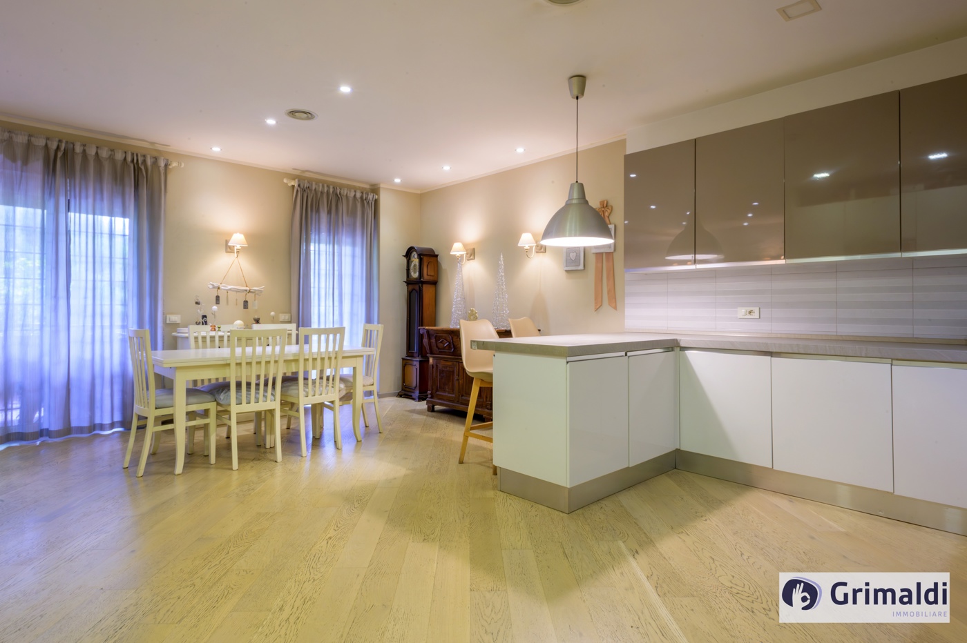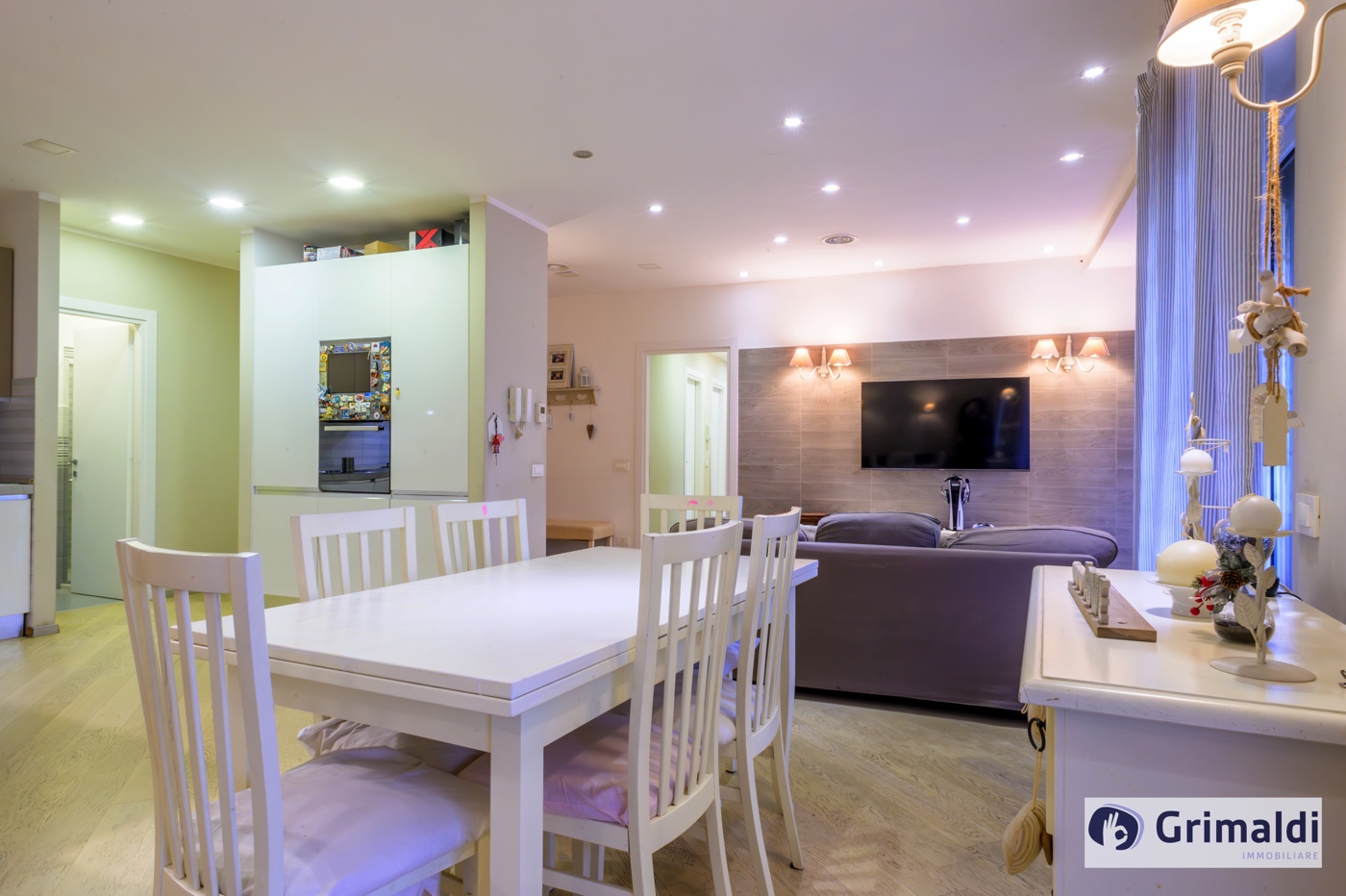 La propriet consiste di salone doppio con cucina a vista completamente arredata e completa di elettrodomestici, tre camere da letto, uno studio, tre bagni ed una lavanderia.